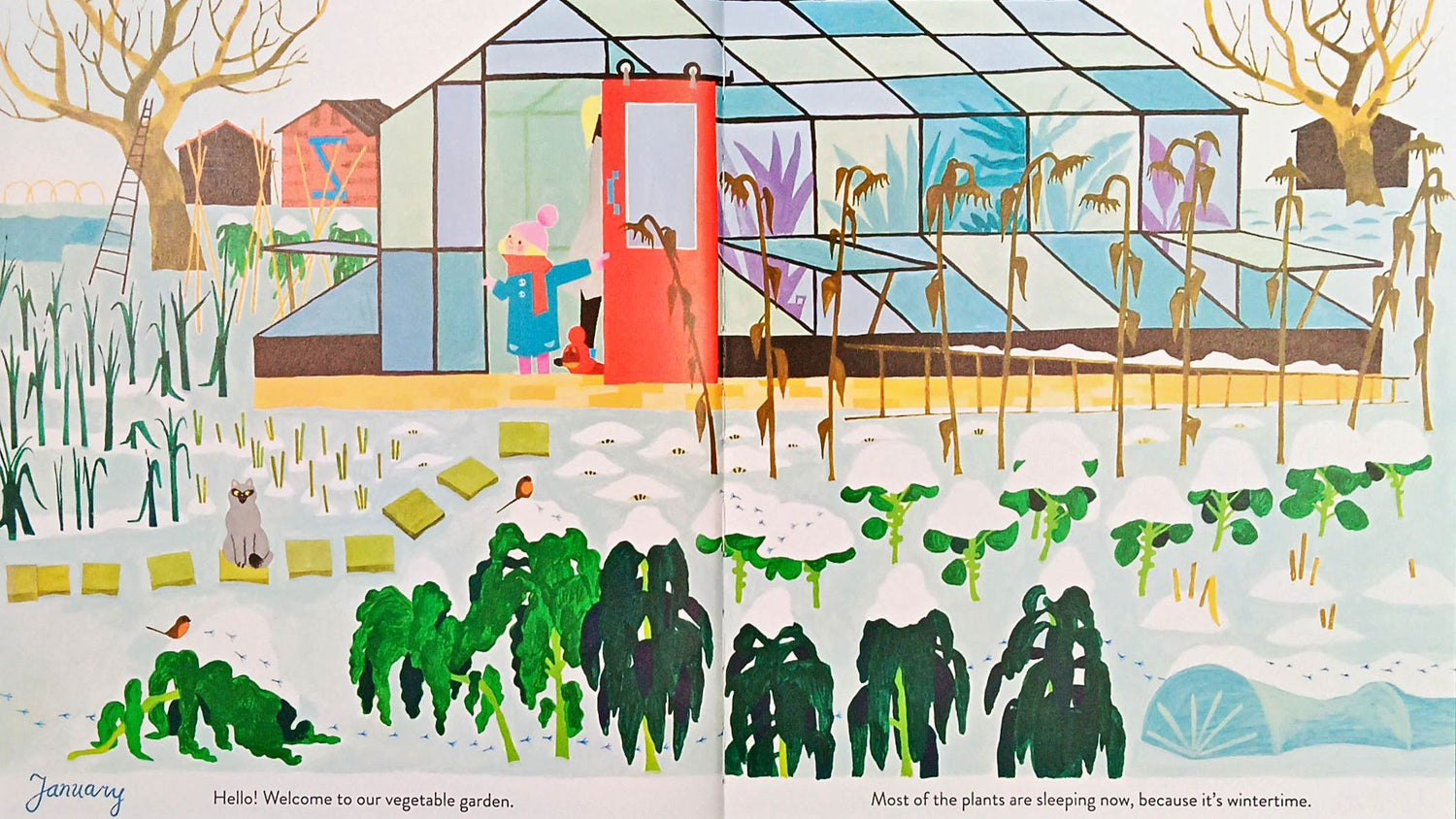 Gorgeous colour illustrations show, month by month, how the vegetable garden grows.