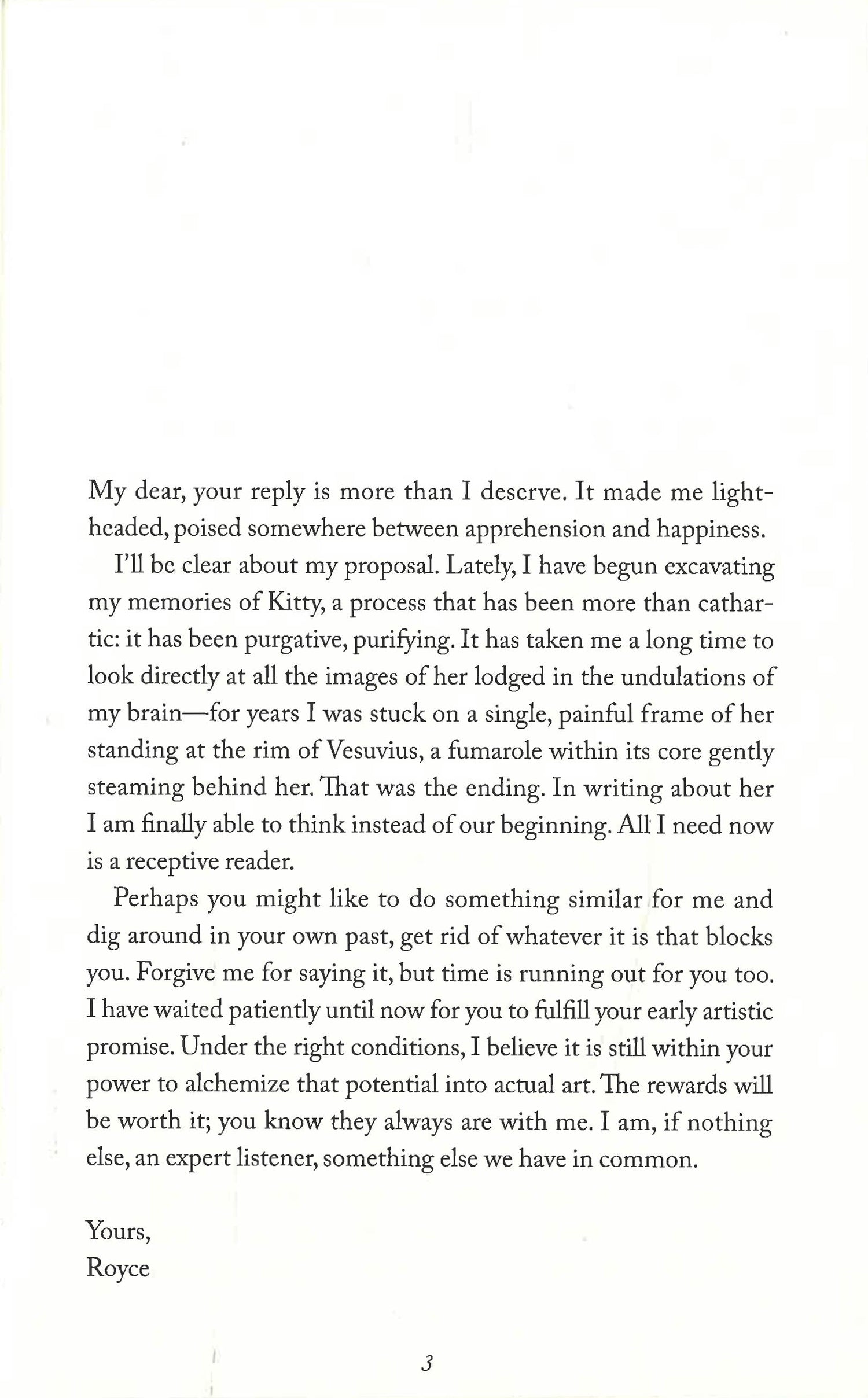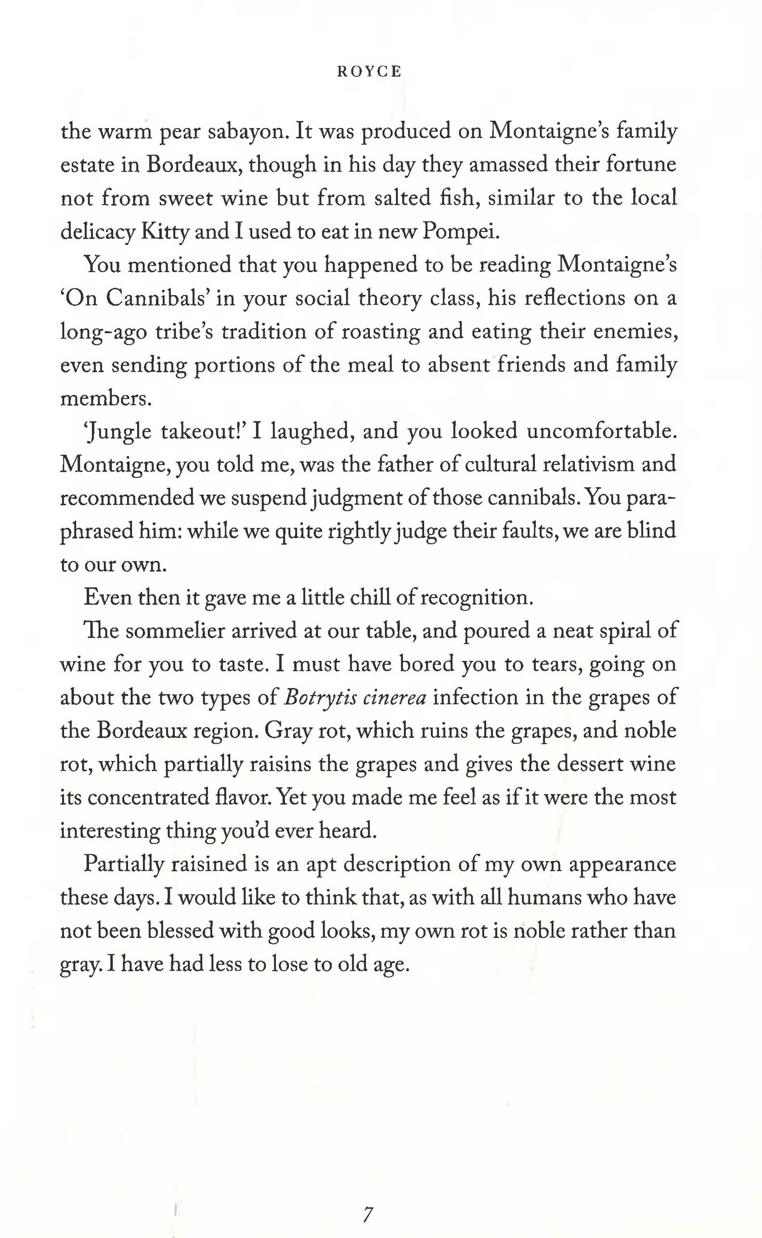Beyond their murky shared history, they are both aware they can use each other to free themselves from deeper pasts. Vita is processing the shameful inheritance of her birthplace, and making sense of the disappearance of her beloved. Royce is haunted by memories of the untimely death of his first love, an archaeologist who worked in the Garden of the Fugitives in Pompeii. Between what's been repressed and what has been disguised are disturbances that reach back through decades, even centuries. But not everything from the past is precious: each gorgeous age is built around a core of rottenness.