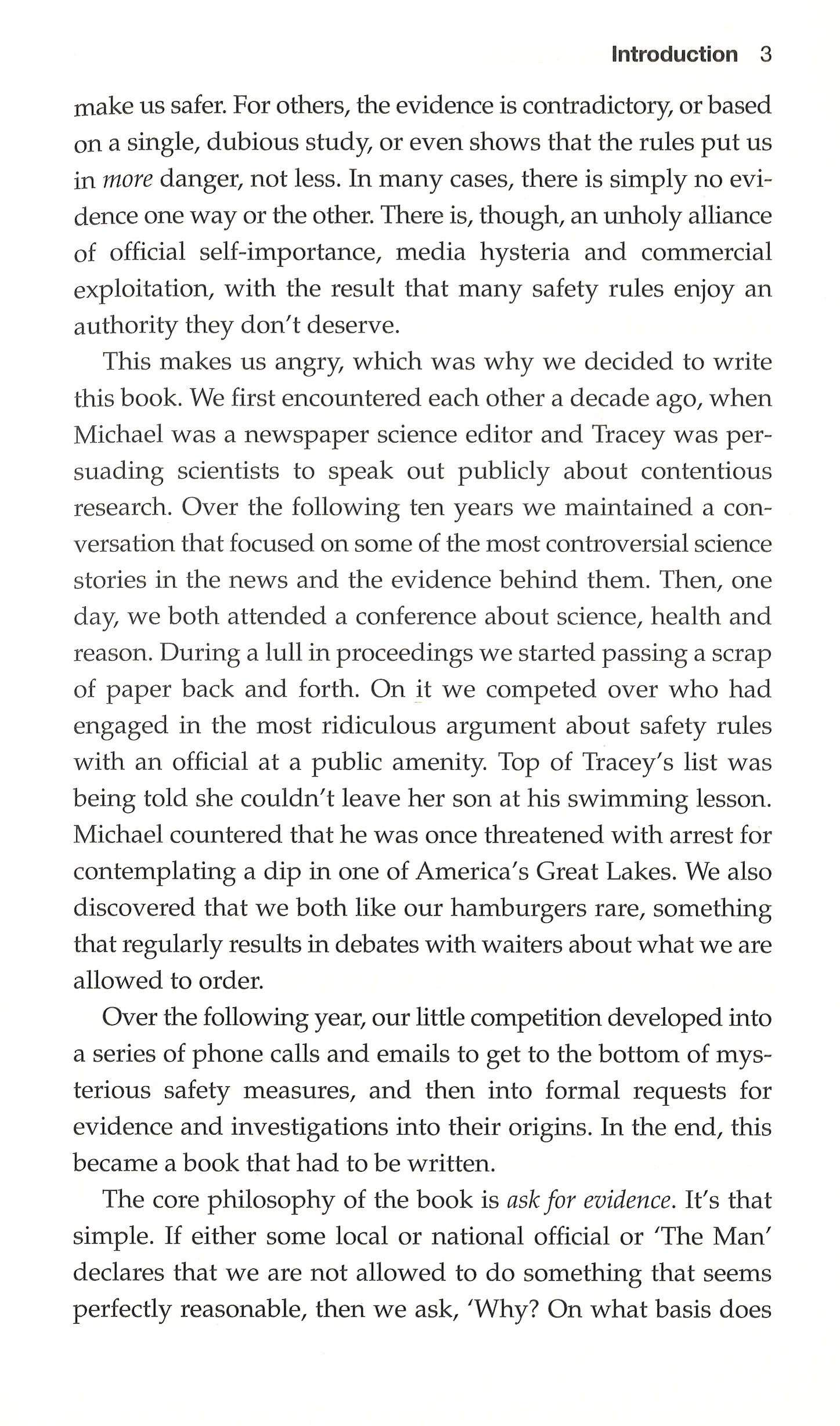 These rules exist, and they exist in the name of our own protection. But in this engrossing dissection of global safety rules and security regulations, authors Tracey Brown and Michael Hanlon dig a little deeper to discover the real reasons behind many of the instructions we obey without questioning their creators' motives. Their conclusions range from the startling to the staggering, and in presenting them the authors seek to empower readers to question the people and organisations who come up with them in the first place.