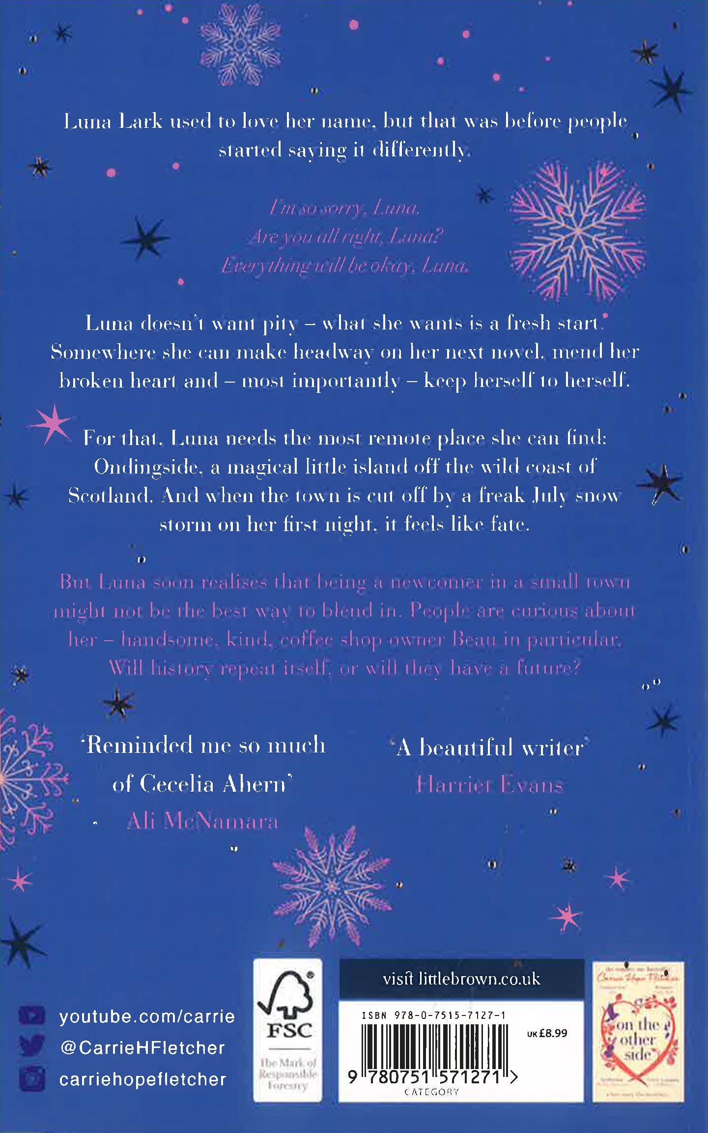 For that Luna needs the most remote place she can find: Ondingside, a magical little island off the wild coast of Scotland. And when the town is cut off on her first night by a freak July snow storm it feels like fate.