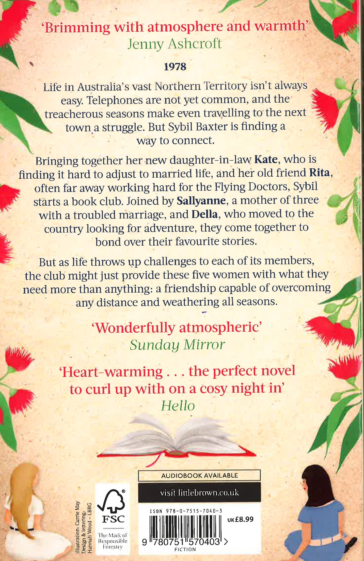 You are warmly invited to join the Fairvale Ladies book club . . . 1978. Life in Australia's vast Northern Territory isn't always easy. Telephones are not yet common, and the treacherous seasons make even travelling to the next town a struggle. But Sybil Baxter is finding a way to connect . . . Bringing together her daughter-in-law Kate, who is finding it hard to adjust to married life, and her old friend Rita, often far away working hard for the Flying Doctors, Sybil starts a book club. Joined by Sallyanne, a mother of three with a trouble marriage, and Della, who moved to the country looking for adventure, they come together to bond over their favourite stories. But as life throws up challenges to each of its members, the club might just provide these five women with what they need more than anything: a friendship capable of overcoming any distance and weathering all seasons. Join other readers in discovering the joy of the Fairvale Ladies . . .