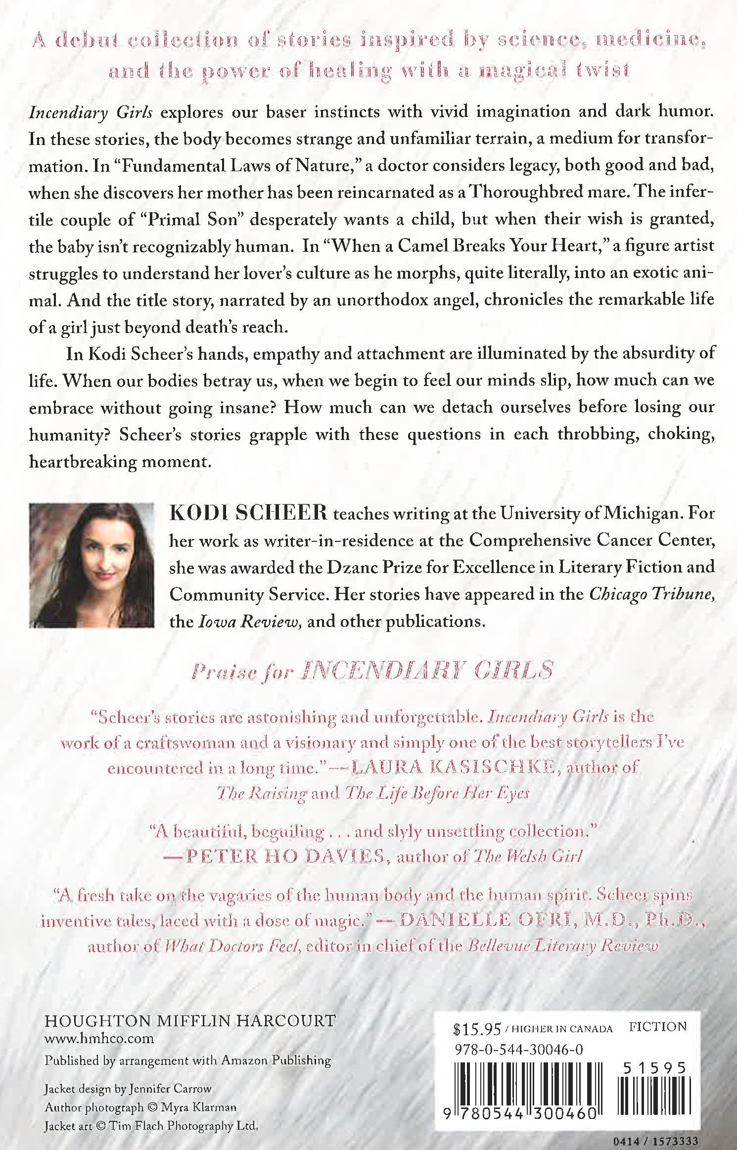 Incendiary Girls explores our baser instincts with vivid imagination and dark humor. In these stories, the body becomes strange and unfamiliar terrain, a medium for transfor-mation. In "Fundamental Laws of Nature," a doctor considers legacy, both good and bad, when she discovers her mother has been reincarnated as a Thoroughbred mare. The infer-tile couple of "Primal Son" desperately wants a child, but when their wish is granted, the baby isn't recognizably human. In "When a Camel Breaks Your Heart," a figure artist struggles to understand her lover's culture as he morphs, quite literally, into an exotic ani-mal. And the title story, narrated by an unorthodox angel, chronicles the remarkable life of a girl just beyond death's reach. In Kodi Scheer's hands, empathy and attachment are illuminated by the absurdity of life. When our bodies betray us, when we begin to feel our minds slip, how much can we embrace without going insane? How much can we detach ourselves before losing our humanity? Scheer's stories grapple with these questions in each throbbing, choking, heartbreaking moment.