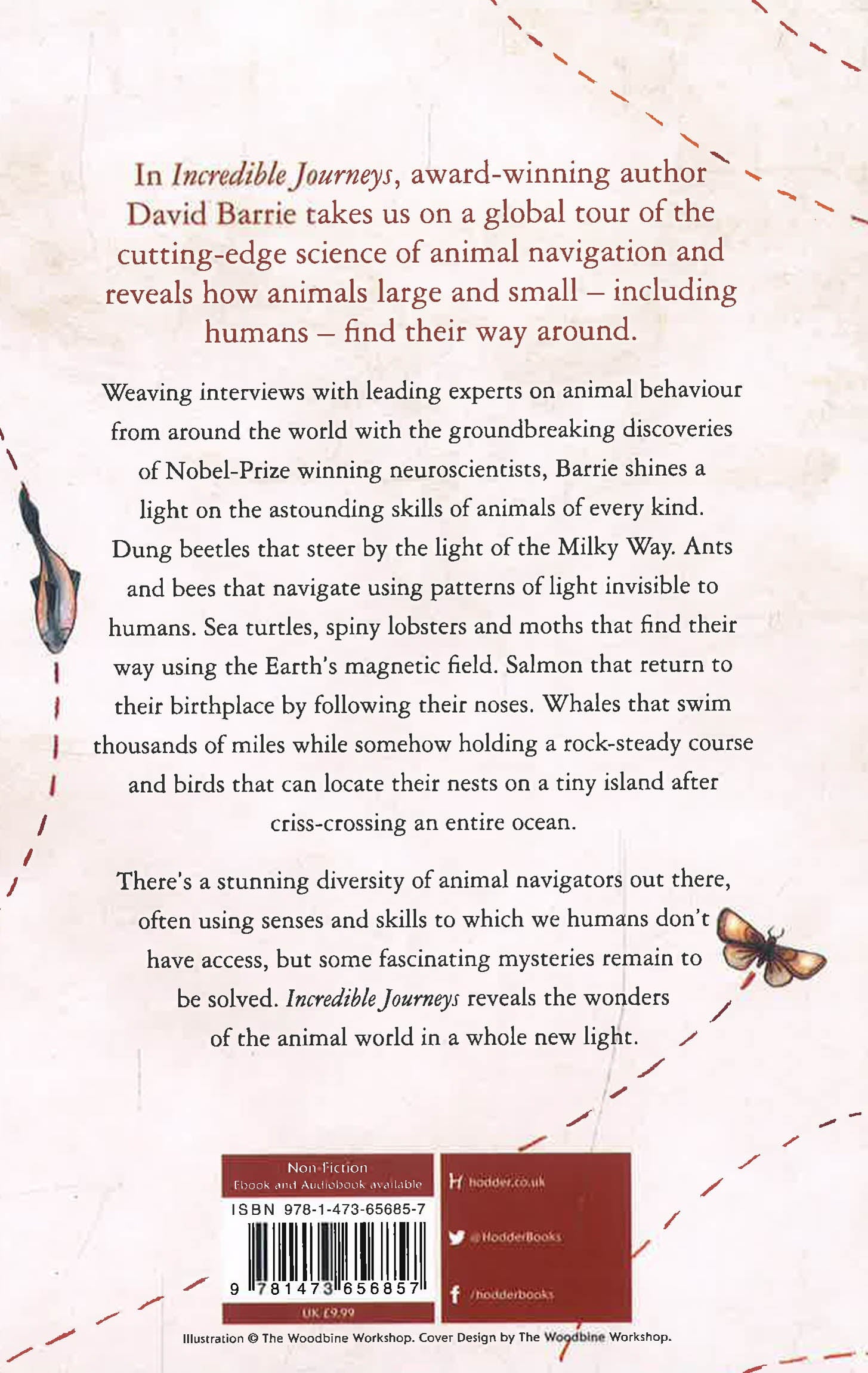 THE SUNDAY TIMES NATURE BOOK OF THE YEAR'A compelling investigation of navigation in the animal kingdom.' Mail on Sunday'David Barrie, who himself has sailed the oceans using a sextant, is passionate about navigation and describes in delightful detail the myriad ways in which animals get around ... eye-opening book.' Frans de Waal, New York Times 'Only a sailor could relate the navigational powers of both humans and animals with such appreciation, excitement, and precision. Thank you, David Barrie, for taking us along on these riveting voyages by sail and wing, hoof and flipper. We arrive surprised, delighted, and awed.' Sy Montgomery, author of The Soul of an Octopus'Immensely entertaining... [Barrie] is an admirably reliable and assiduous guide to what we do and don't yet know.' Andrew Holgate, Sunday Times'Barrie has a good eye for colourful detail.' Kathryn Hughes, Mail on Sunday'This is a must-read for anyone fascinated with the wonders of nature.' Publishers Weekly In Incredible Journeys, award-winning author David Barrie takes us on a tour of the cutting-edge science of animal navigation, where breakthroughs are allowing scientists to unravel, for the first time, how animals as various as butterflies, birds, crustaceans, fish, reptiles and even people find their way.Weaving interviews with leading experts on animal behaviour with the groundbreaking discoveries of Nobel-Prize winning neuroscientists, Barrie shines a light on the astounding skills of animals of every stripe. Dung beetles that steer by the light of the Milky Way. Ants and bees that navigate using patterns of light invisible to humans. Sea turtles, spiny lobsters and moths that find their way using the Earth's magnetic field. Salmon that return to their birthplace by following their noses. Baleen whales that swim thousands of miles while holding a rock-steady course and birds that can locate their nests on a tiny island after crisscrossing an entire ocean. There's a stunning diversity of animal navigators out there, often using senses and skills we humans don't have access to ourselves. For the first time, Incredible Journeys reveals the wonders of these animals in a whole new light.