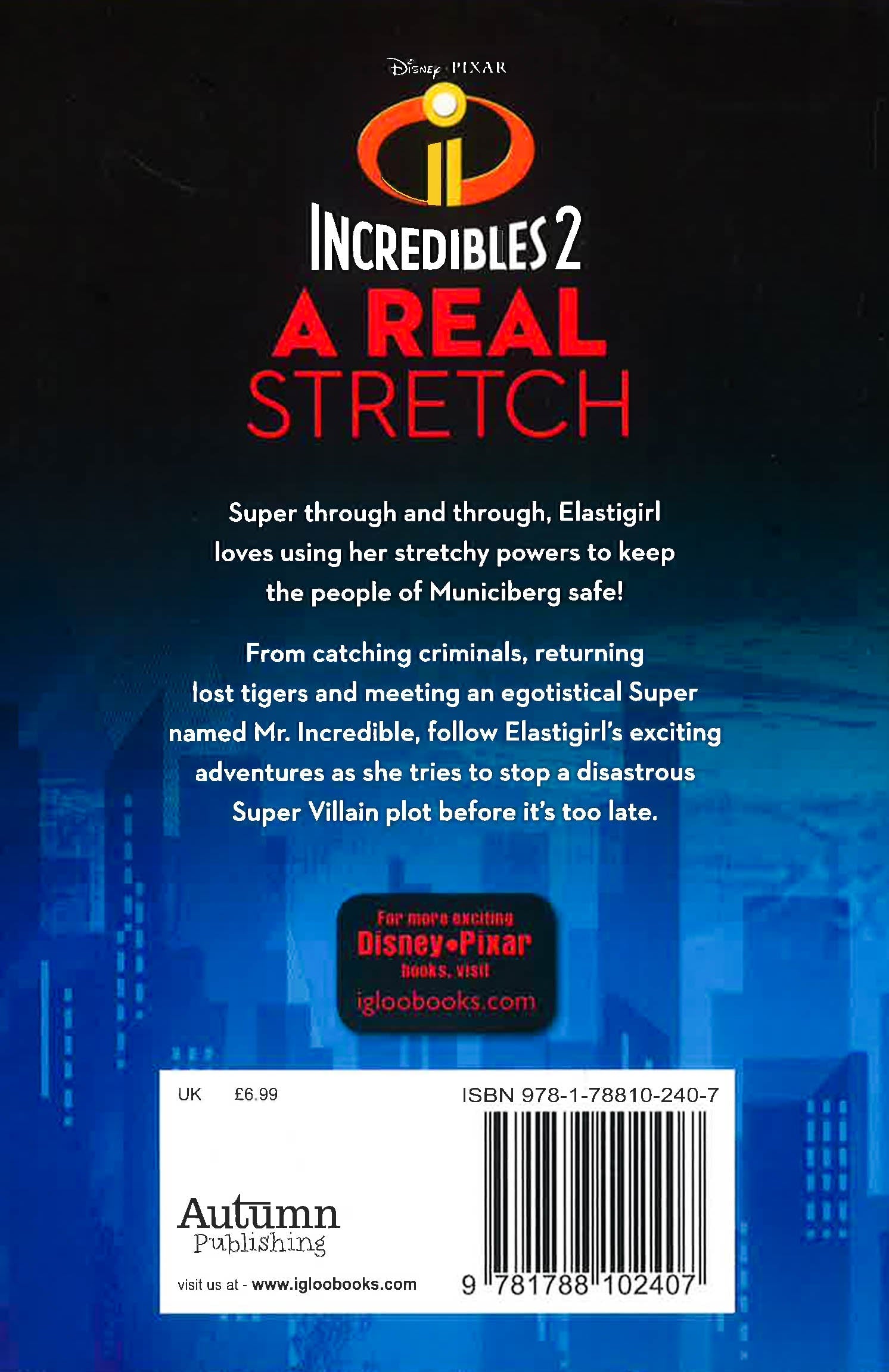 Super through and through, Elastigirl loves using her stretchy powers to keep the people of Municiberg safe! From catching criminals, returning lost tigers, and meeting an egotistical Super named Mr. Incredible, follow Elastigirl'sexciting adventures as she tries to stop a disastrous Super Villain plot before it's too late.