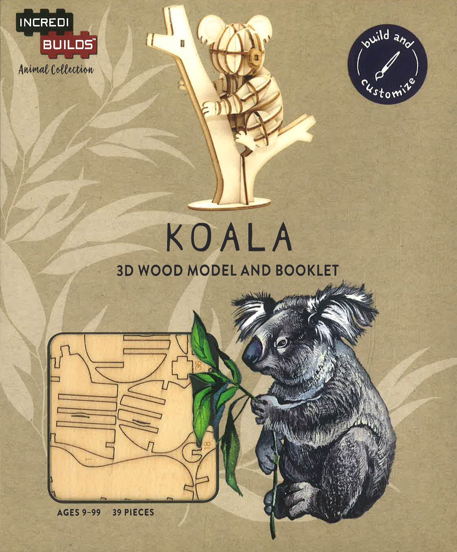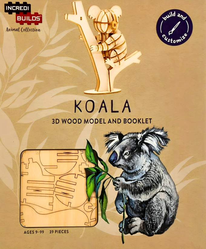 Take the chance to explore your creativity with this exciting IncrediBuildsTM wood model set and craft your own unique, displayable koala! The wood model is easy to assemble and snaps together to form a dynamic 3D model. No glue or tools needed!