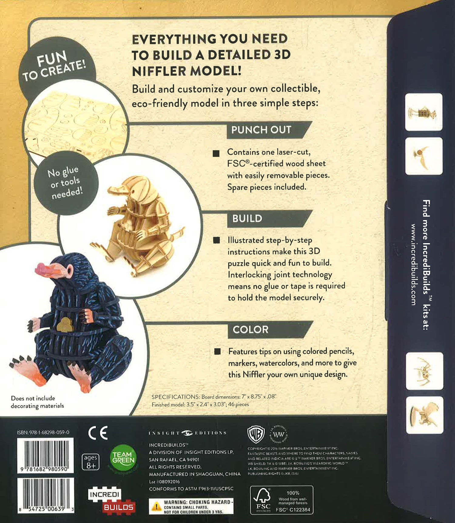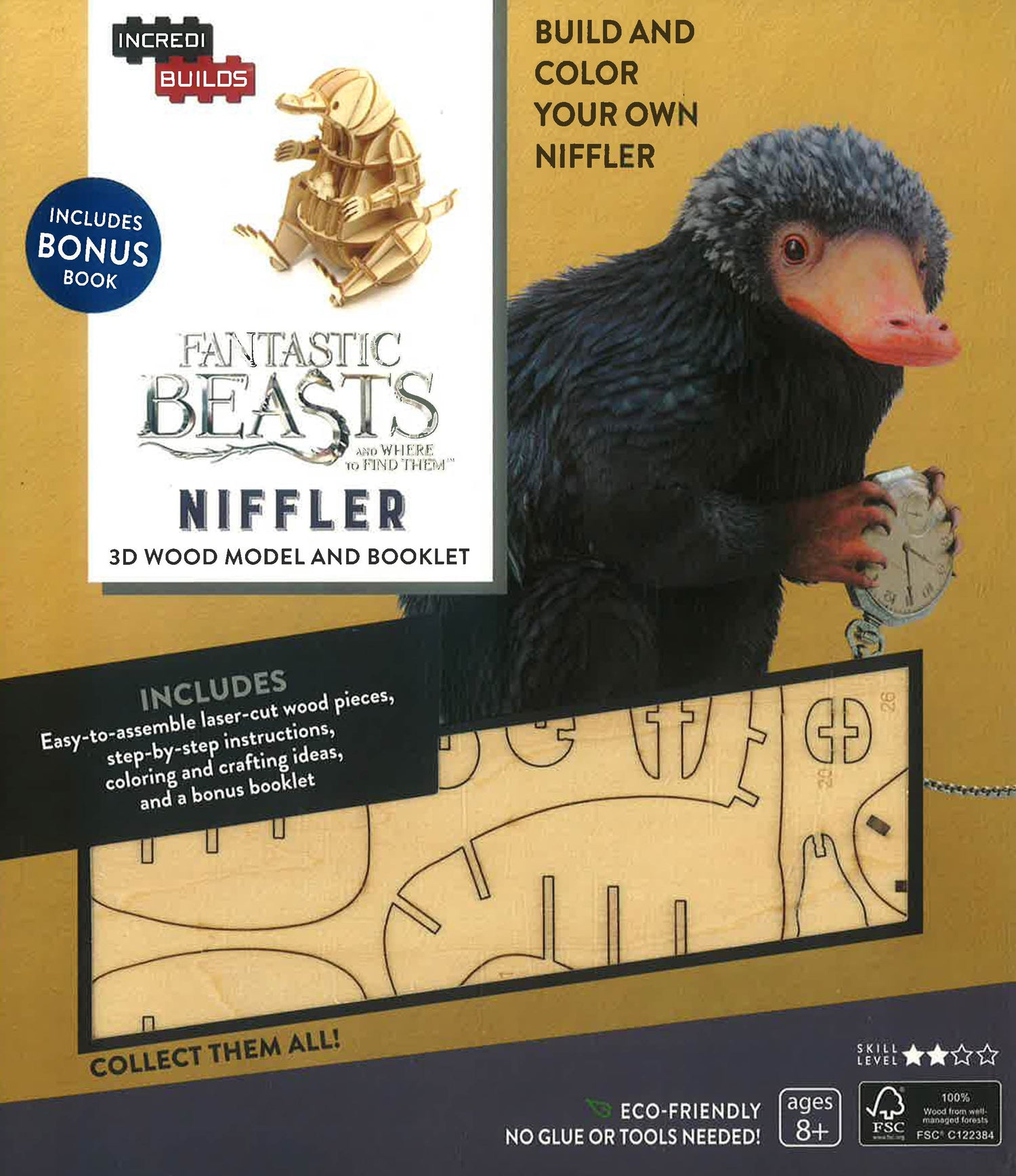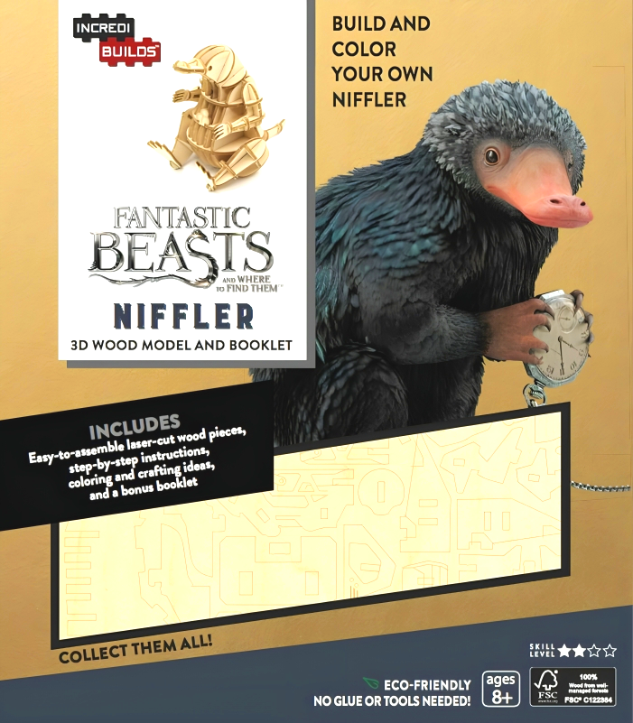 Kids can build their own customizable Niffler with this thrilling hardcover book and 3D wood model set from IncrediBuilds.