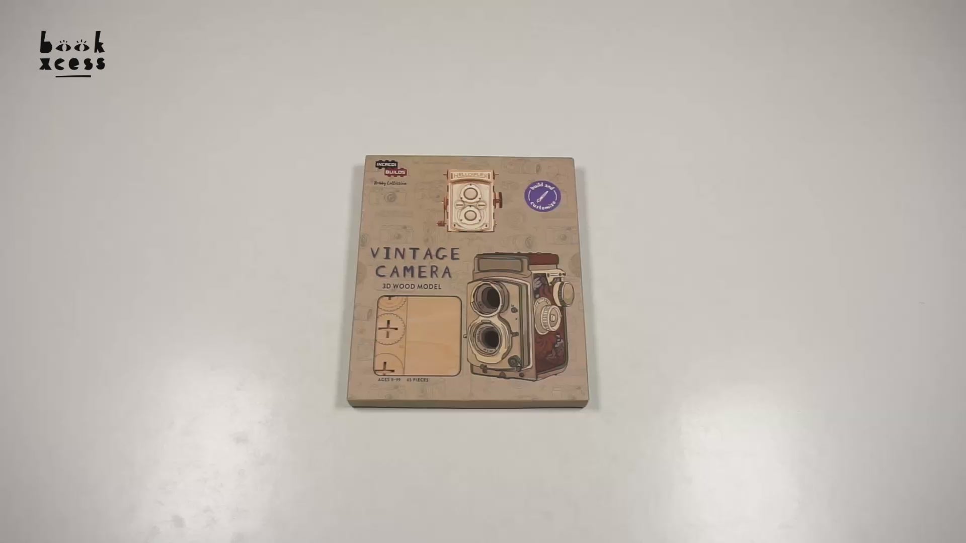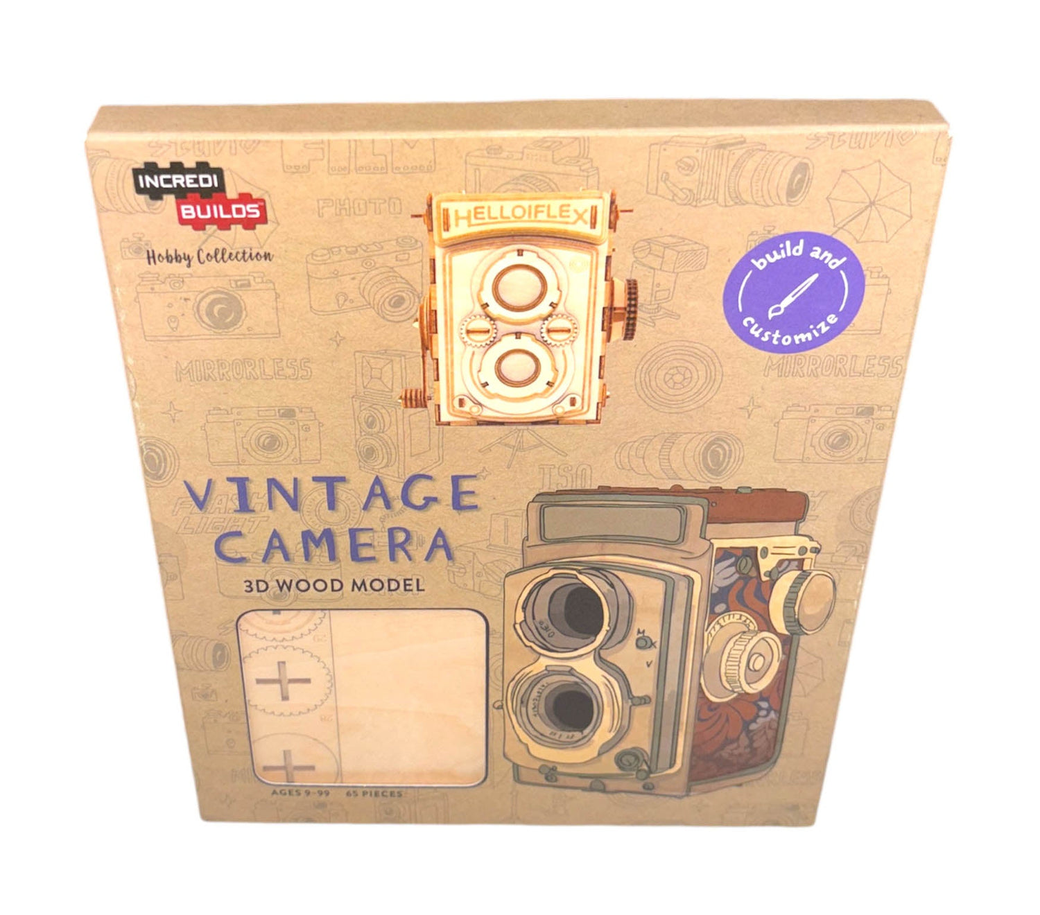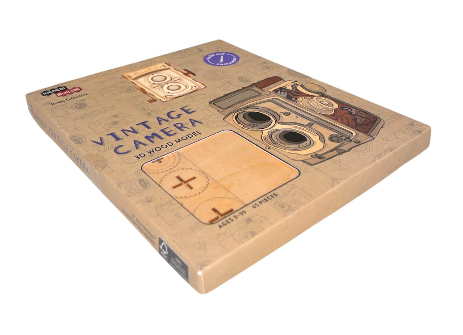 Take the chance to explore your creativity with this exciting IncrediBuildsTM wood model and craft your own unique, displayable vintage camera! The wood pieces are easy to assemble and snap together to form a dynamic 3D model. No glue or tools needed!