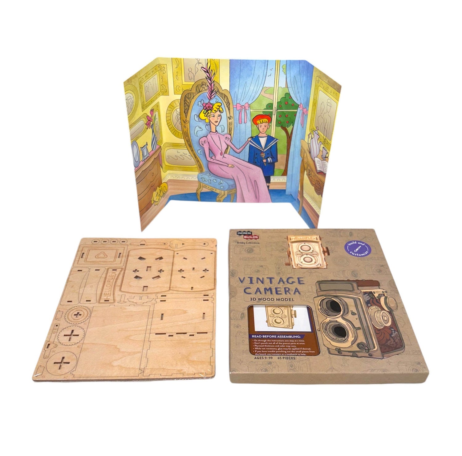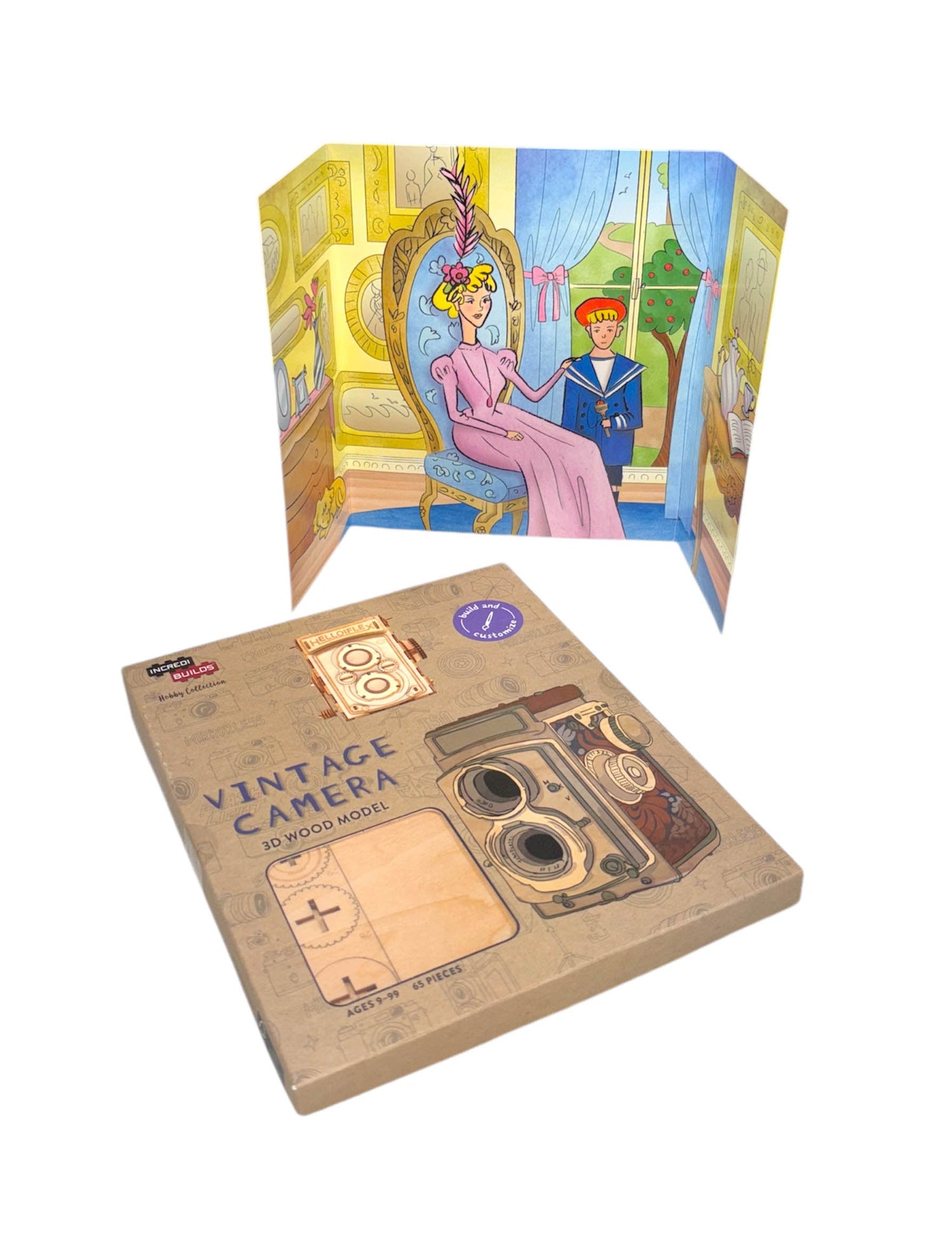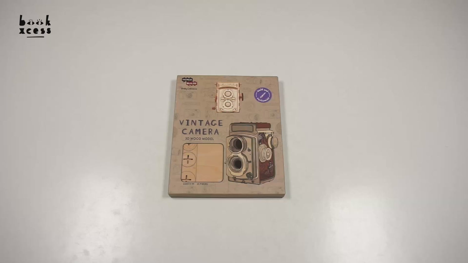 Take the chance to explore your creativity with this exciting IncrediBuildsTM wood model and craft your own unique, displayable vintage camera! The wood pieces are easy to assemble and snap together to form a dynamic 3D model. No glue or tools needed!