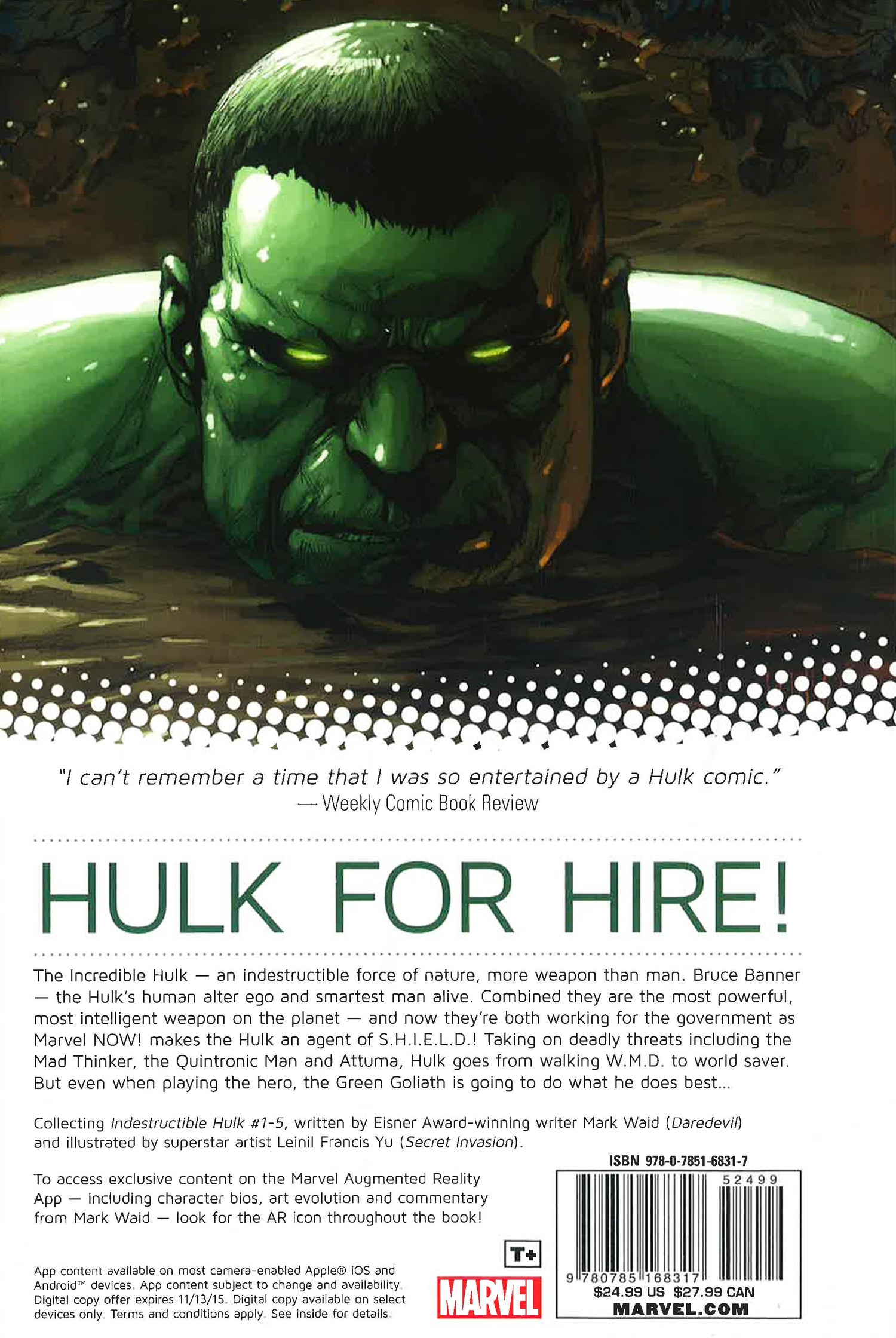 Part of the Marvel NOW! initiative! Hulk: Indestructible force more weapon than man. Banner: Smartest man alive. Combined, they are the strongest, smartest weapon on the planet! And NOW!, the Indestructible Hulk is an Agent of S.H.I.E.L.D.! Hulk's first official missions include taking down the all-new Quintronic Man and battling Attuma on the ocean floor! But not everything is as it seems: What is Banner's secret hold over S.H.I.E.L.D. Director Maria Hill? What and where is Bannertown, USA? And which one of Banner's lab assistants holds a deadly secret? Plus: Bruce Banner and Tony Stark are friends but Hulk and Iron Man are anything but! The Golden Avenger guest-stars as Eisner Award-winning writer Mark Waid (DAREDEVIL) and superstar artist Leinil Yu take the Hulk in an all-new direction...NOW! INDESTRUCTIBLE HULK VOL. 1: AGENT OF S.H.I.E.L.D. includes a code for a free digital copy on the Marvel Comics app (for iPhone(R), iPad(R), iPad Touch(R) & Android devices) and Marvel Digital Comics Shop. Additionally, this collection also features special augmented reality content available exclusive through the Marvel AR app - including cover recaps, behind the scenes features and more that add value to your reading experience at no additional cost.