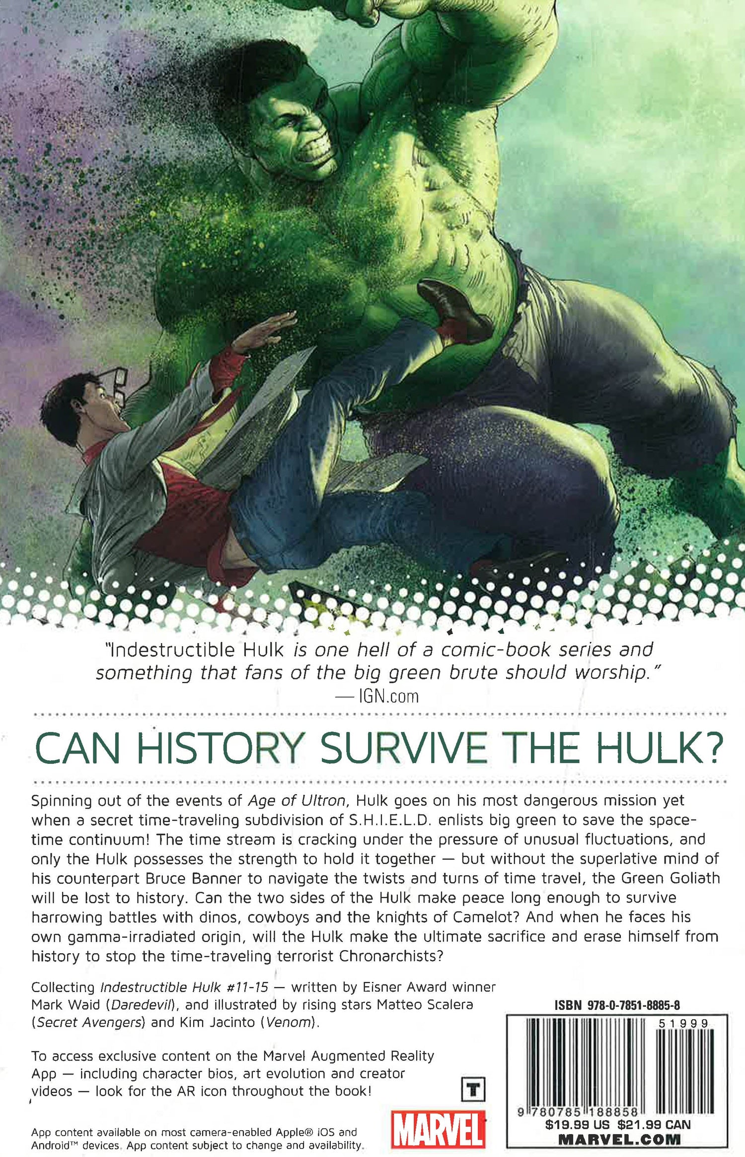 Can history survive the Hulk? Spinning out of the events of Age of Ultron, Hulk goes on his most dangerous mission yet when a secret time-traveling subdivision of S.H.I.E.L.D. enlists him to save the space-time continuum! The timestream cracks under the pressure of unusual fluctuations and only the Hulk possesses the strength to hold it together - but without the superlative mind of his counterpart Bruce Banner to navigate the twists and turns of time travel, the green goliath will be lost to history! Can the two sides of the Hulk make peace long enough to survive harrowing battles with dinosaurs, cowboys and the knights of Camelot? And when he faces his own gamma-irradiated origin, will the Hulk make the ultimate sacrifice and erase himself from history in order to stop the time-traveling terrorist Chronarchists?
