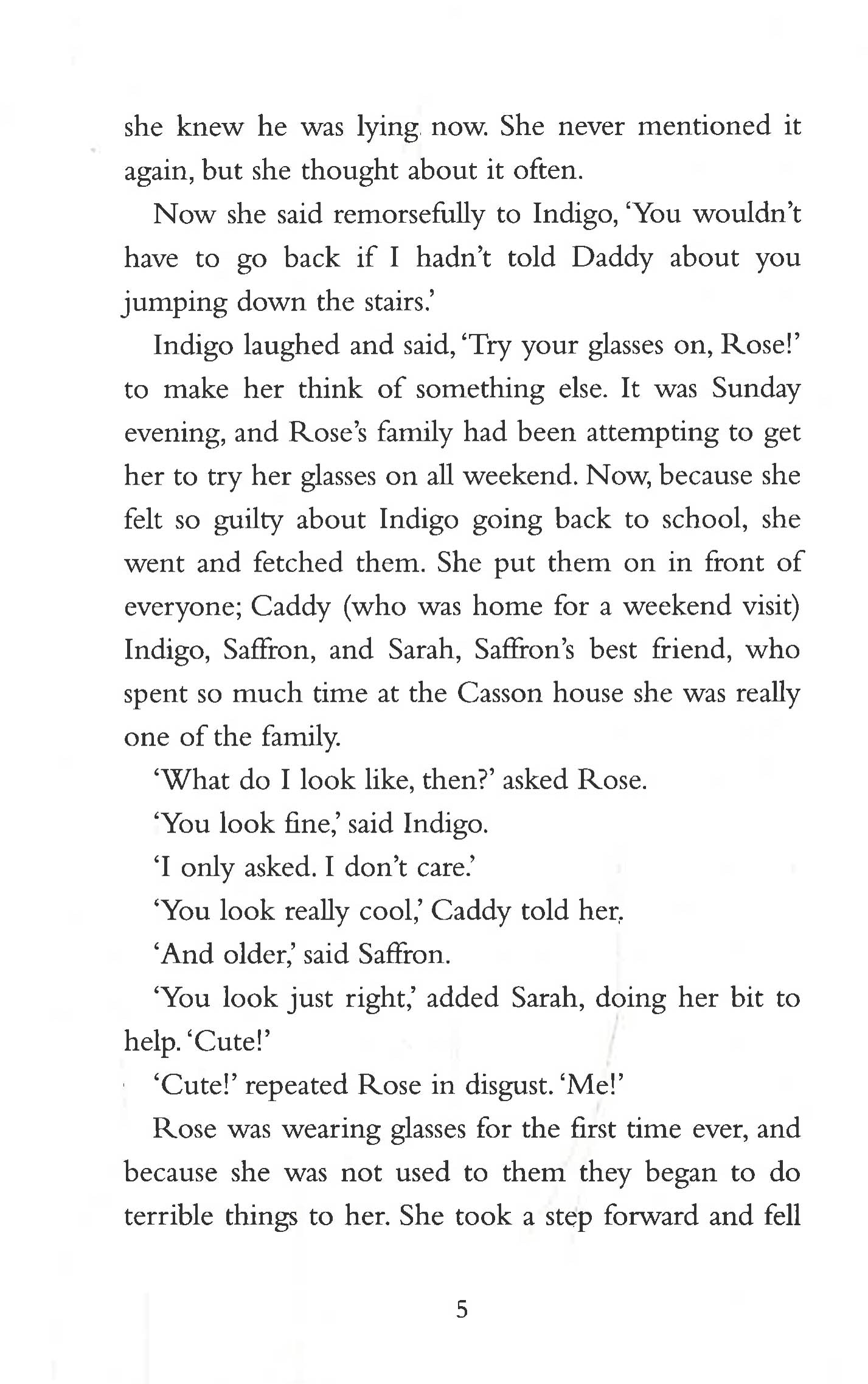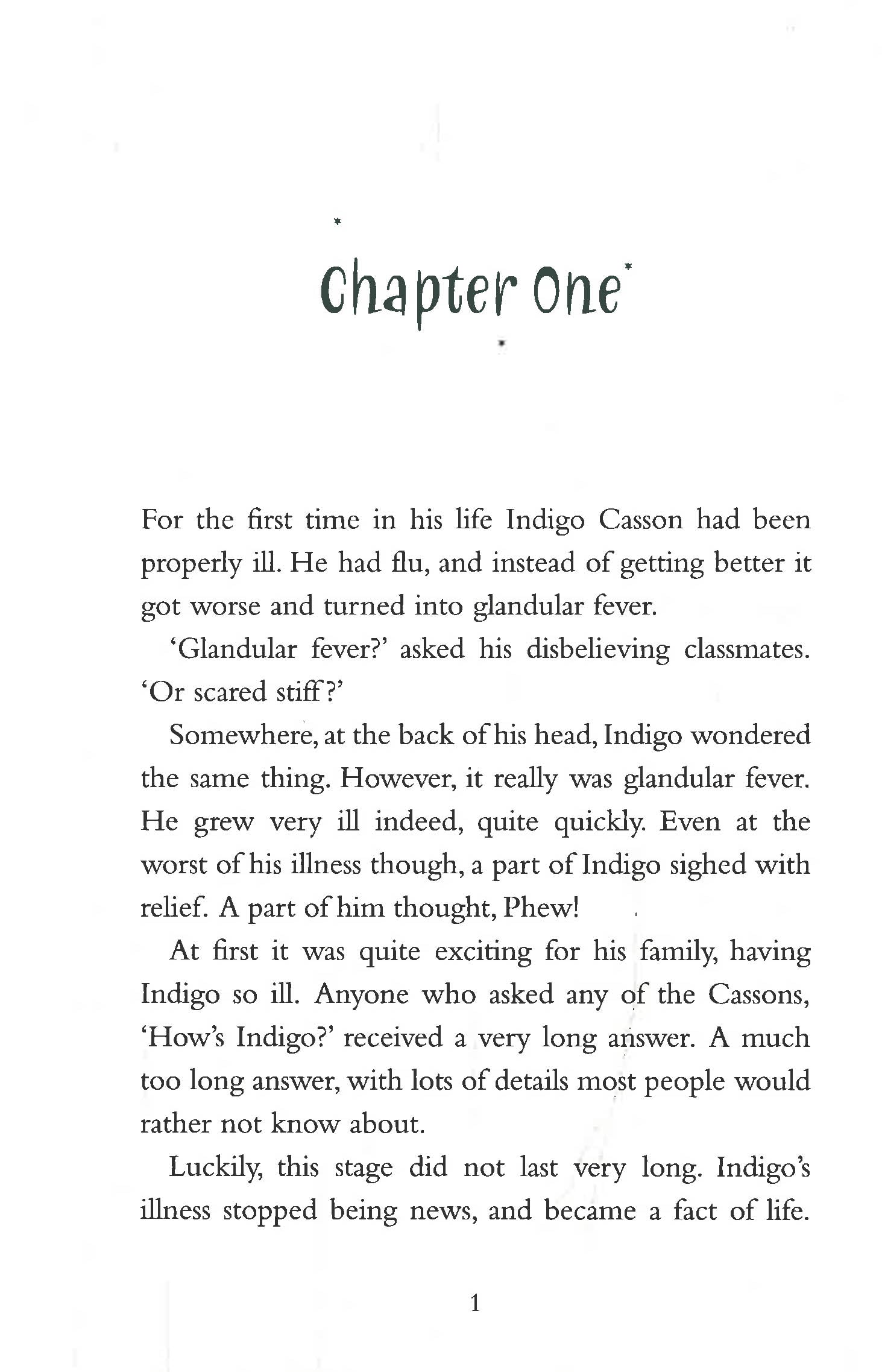 Indigo, having just recovered from a bout of mononucleosis, must return to school after missing an entire semester. Only his younger sister and loyal sidekick, Rose, knows why he's dreading it so much. As it turns out, the school bullies are eagerly awaiting Indigo's return so that they can pick up where they left off -- flushing his head in the toilet. But Indigo hasn't counted on meeting Tom, an American student who is staying with his grandmother in England for the year. With his couldn't-care-less attitude and rock-and-roll lifestyle, Tom becomes Indigo's ally, and together they work to take back the school. Meanwhile, eight-year-old Rose is desperately trying to avoid wearing horrible glasses, nineteen-year-old Caddy is agonizing over her many suitors, Saffy is working overtime with her best friend, Sarah, to protect Indigo from the gang, and with their father, Bill, in London at his art studio, their mother, Eve, is just trying to stay on top of it all!