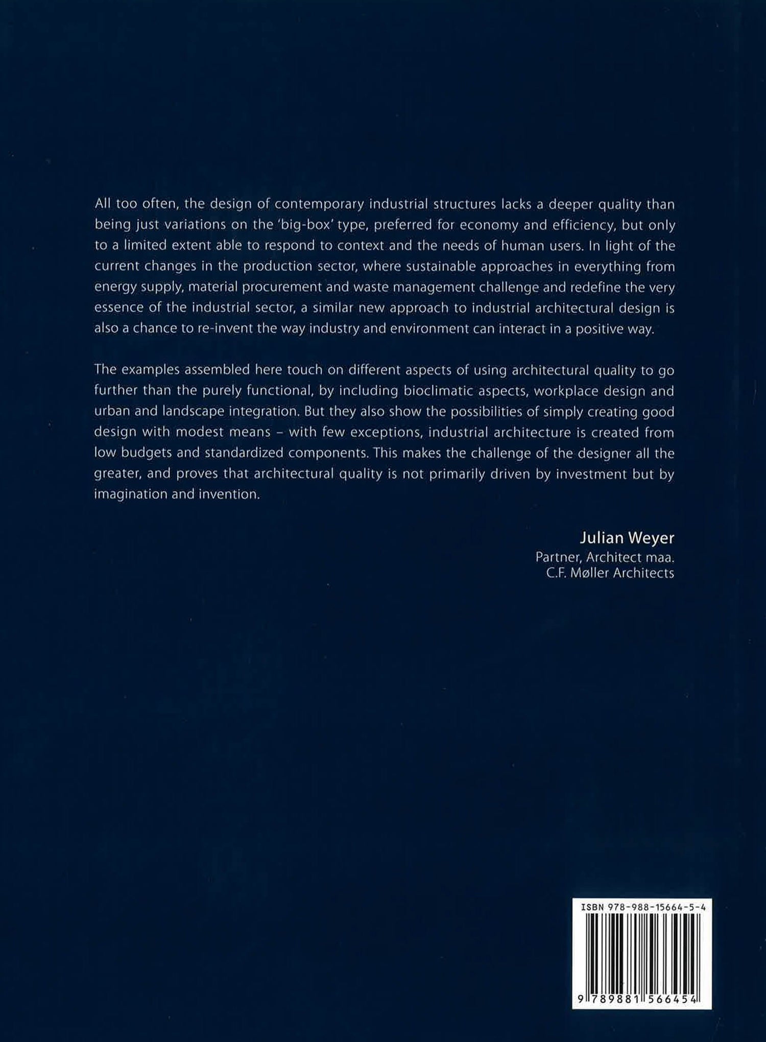 All too often, the design of contemporary industrial structures is just a variation on the big-box format, which can only, to a limited extent, respond to context and the needs of human users. In light of the current changes in the production sector, where sustainable approaches in everything from energy supply, material procurement, and waste management challenge and redefine the very essence of the industrial sector, a similar new approach to industrial architectural design is a chance to reinvent the way industry and environment can interact in a positive way. The chance to reinvent the way industry and environment can interact in a positive way. The examples assembled here touch on different aspects of using architectural quality to go further than the purely functional, but they also show the possibilites of simply creating good design than the purely functional, but they also show the possibilities of simply creating good design with modest means. Industrial architecture is often created from low budgets and standardized with modest means. This makes the challenge of the desiner all the greater, and proves that architectural quality is not primarily driven by investment but by imagination and invention.
