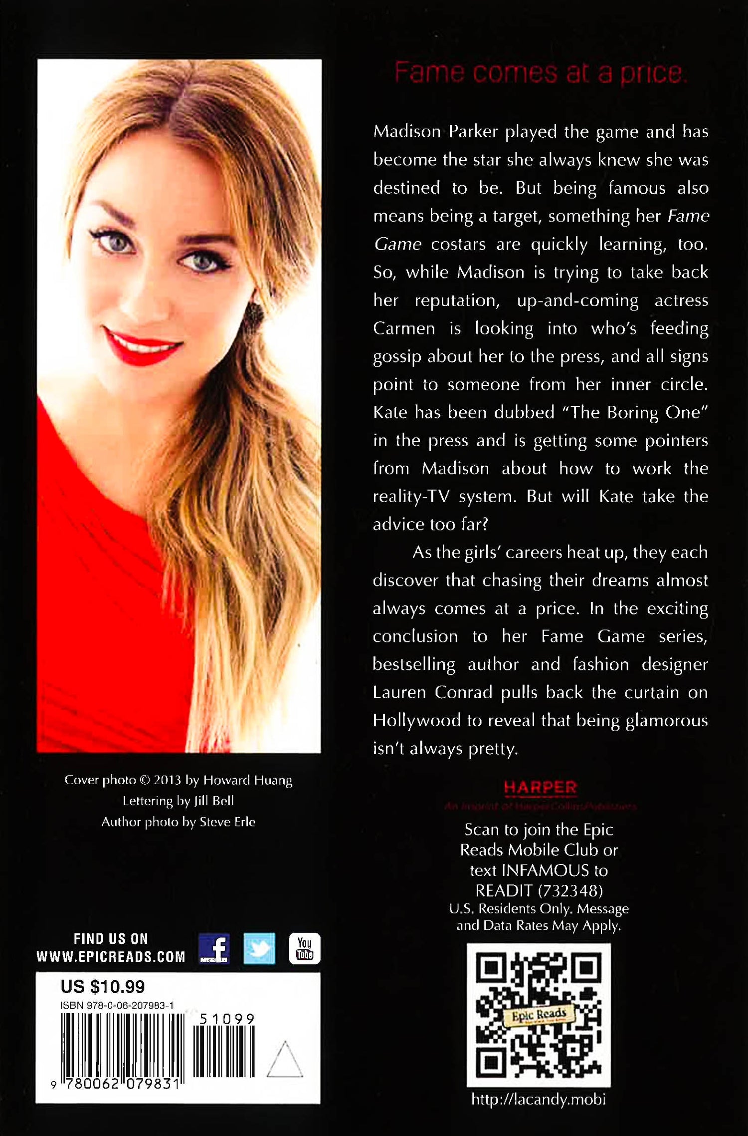 Lauren Conrad, star of the hit MTV reality series The Hills, brings her insider knowledge to Infamous, the exciting finale to her New York Times bestselling Fame Game series. Kate and Carmen are about to become big stars, but they're going to have to survive some backstage drama first. And Madison is learning hard lessons about fame as she deals with backstabbing "friends" and family, out-of-control paparazzi, and a scandal reported in every tabloid. For anyone who has ever wondered what it is like to make it in Hollywood, Infamous is full of dishy details about young Hollywood and the realities of becoming famous--by the bestselling author of the L.A. Candy series, Lauren Conrad Style, and Lauren Conrad Beauty.*This Book May Have Remainder Mark* *This Book May Have Deckle Edges*