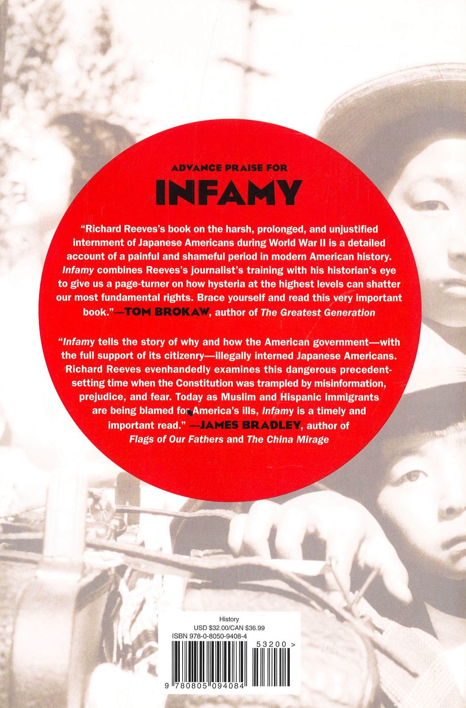 A LOS ANGELES TIMES BESTSELLER - A NEW YORK TIMES BOOK REVIEW EDITOR'S CHOICE - Bestselling author Richard Reeves provides an authoritative account of the internment of more than 120,000 Japanese-Americans and Japanese aliens during World War II Less than three months after Japan bombed Pearl Harbor and inflamed the nation, President Roosevelt signed an executive order declaring parts of four western states to be a war zone operating under military rule. The U.S. Army immediately began rounding up thousands of Japanese-Americans, sometimes giving them less than 24 hours to vacate their houses and farms. For the rest of the war, these victims of war hysteria were imprisoned in primitive camps. In Infamy, the story of this appalling chapter in American history is told more powerfully than ever before. Acclaimed historian Richard Reeves has interviewed survivors, read numerous private letters and memoirs, and combed through archives to deliver a sweeping narrative of this atrocity. Men we usually consider heroes-FDR, Earl Warren, Edward R. Murrow-were in this case villains, but we also learn of many Americans who took great risks to defend the rights of the internees. Most especially, we hear the poignant stories of those who spent years in war relocation camps, many of whom suffered this terrible injustice with remarkable grace. Racism, greed, xenophobia, and a thirst for revenge: a dark strand in the American character underlies this story of one of the most shameful episodes in our history. But by recovering the past, Infamy has given voice to those who ultimately helped the nation better understand the true meaning of patriotism. Praise for Infamy "A compulsively readable, emotionally rich and passionately written account of the internment of 120,000 American Japanese in concentration camps during World War II.... Reeves' excellent Infamy, the first popular, general history of the subject in more than 25 years, reminds us that not only can it happen here, it did.... Every reader who has lived the post-9/11 era will immediately notice the parallels."--Los Angeles Times "Highly readable.... The story of this national disgrace, long buried...still has the power to shock. [Infamy is a] vivid and instructive reminder of what war and fear can do to civilized people." --Evan Thomas, The New York Times Book Review "History's judgment is that internment...was wrong. Mr. Reeves's excellent book gives us an opportunity to learn from past mistakes.... Reeves is especially good at bringing to life the social experience of internment." --The Wall Street Journal "Richard Reeves's book on the harsh, prolonged and unjustified internment of Japanese-Americans during World War II is a detailed account of a painful and shameful period in modern American history. Infamy combines Reeves's journalist's training with his historian's eye to give us a page-turner on how hysteria at the highest levels can shatter our most fundamental rights. Brace yourself and read this very important book." --Tom Brokaw, author of The Greatest Generation "For years, the unjust relocation and incarceration of more than 120,000 Japanese Americans living on the West Coast during World War II - the majority of them American citizens - was shrouded in shame and secrecy.... [Infamy's] greatest strength is probably Reeves's masterful use of anecdotes, which enliven an epic story with poignant tales of individual hardship, courage, and endurance." --The Boston Globe "Infamy tells the story of why and how the American government--with the full support of its citizenry--illegally interned Japanese-Americans. Richard Reeves even-handedly examines this dangerous precedent-setting time when the Constitution was trampled by misinformation, prejudice, and fear. Today as Muslim and Hispanic immigrants are being blamed for America's ills, Infamy is a timely and important read." --James Bradley, author of Flags of Our Fathers and The China Mirage "In Infamy, journalist Richard Reeves...provides a sweeping and searching account of this appalling chapter in the history of the United States.... Reeves reserves the heart of his book -- and rightfully so -- for a narrative of the heartbreaking experiences of evacuated individuals and families." --San Francisco Chronicle "Infamy...is perhaps the most thorough history of the relocation to date." --The Denver Post "More than 120,000 Japanese-Americans were locked up during World War II...[and Infamy] tells their tale with energy, compassion and moral outrage.... With meticulous care [Reeves documents] the decisions made in Washington by the world's most powerful men, and how those decisions affected the lives of ordinary Americans whose only crime was to be of Japanese descent." --Minneapolis Star Tribune