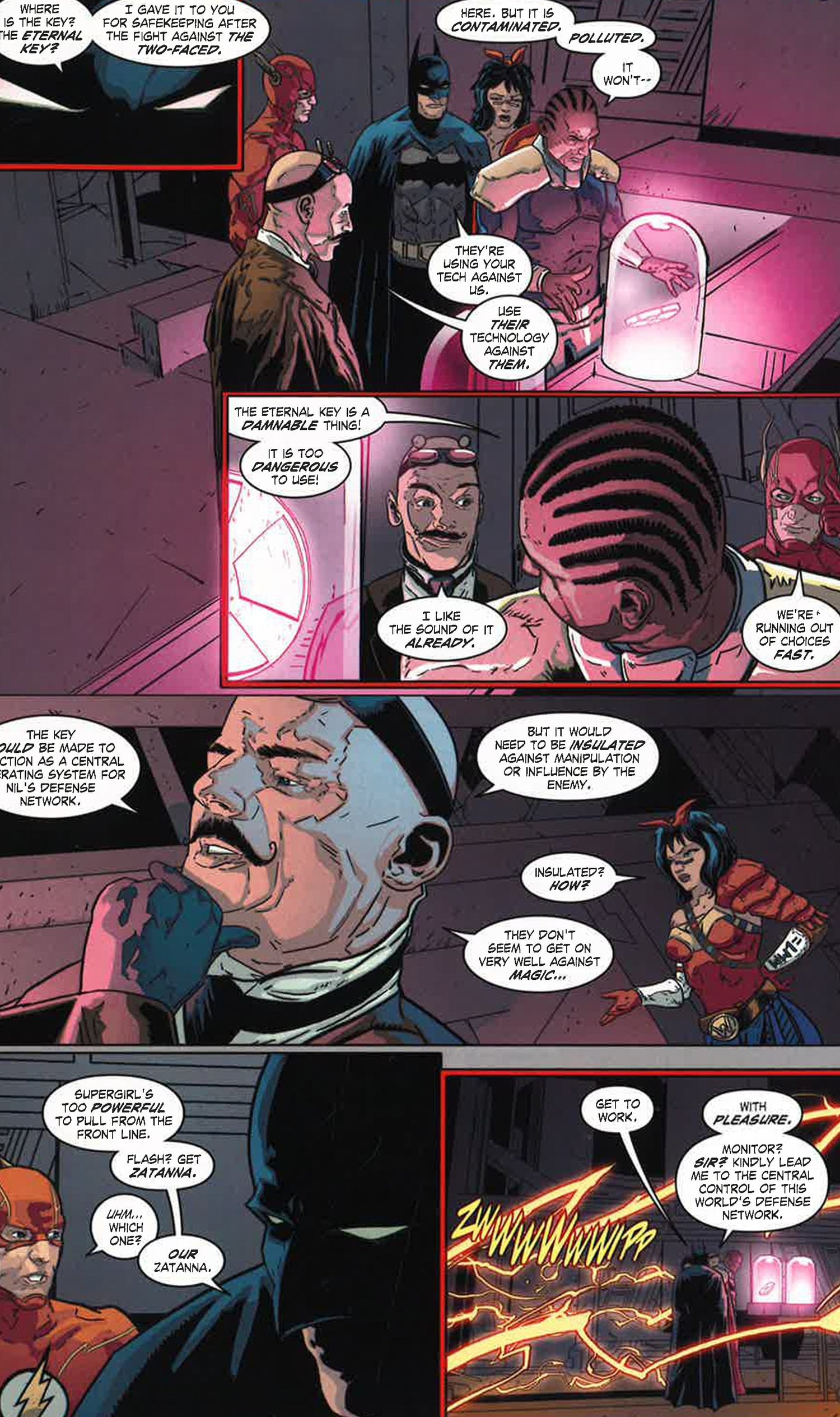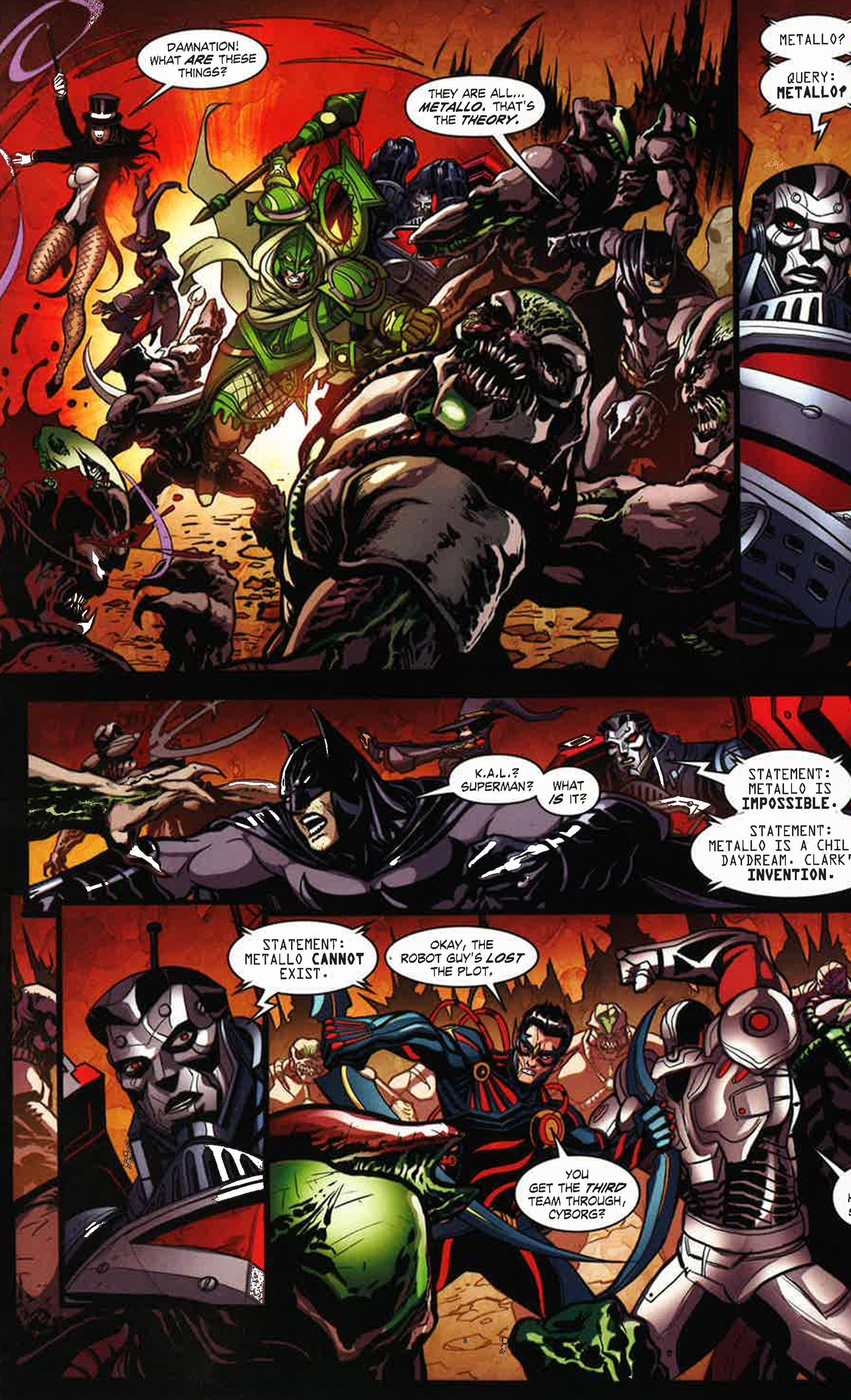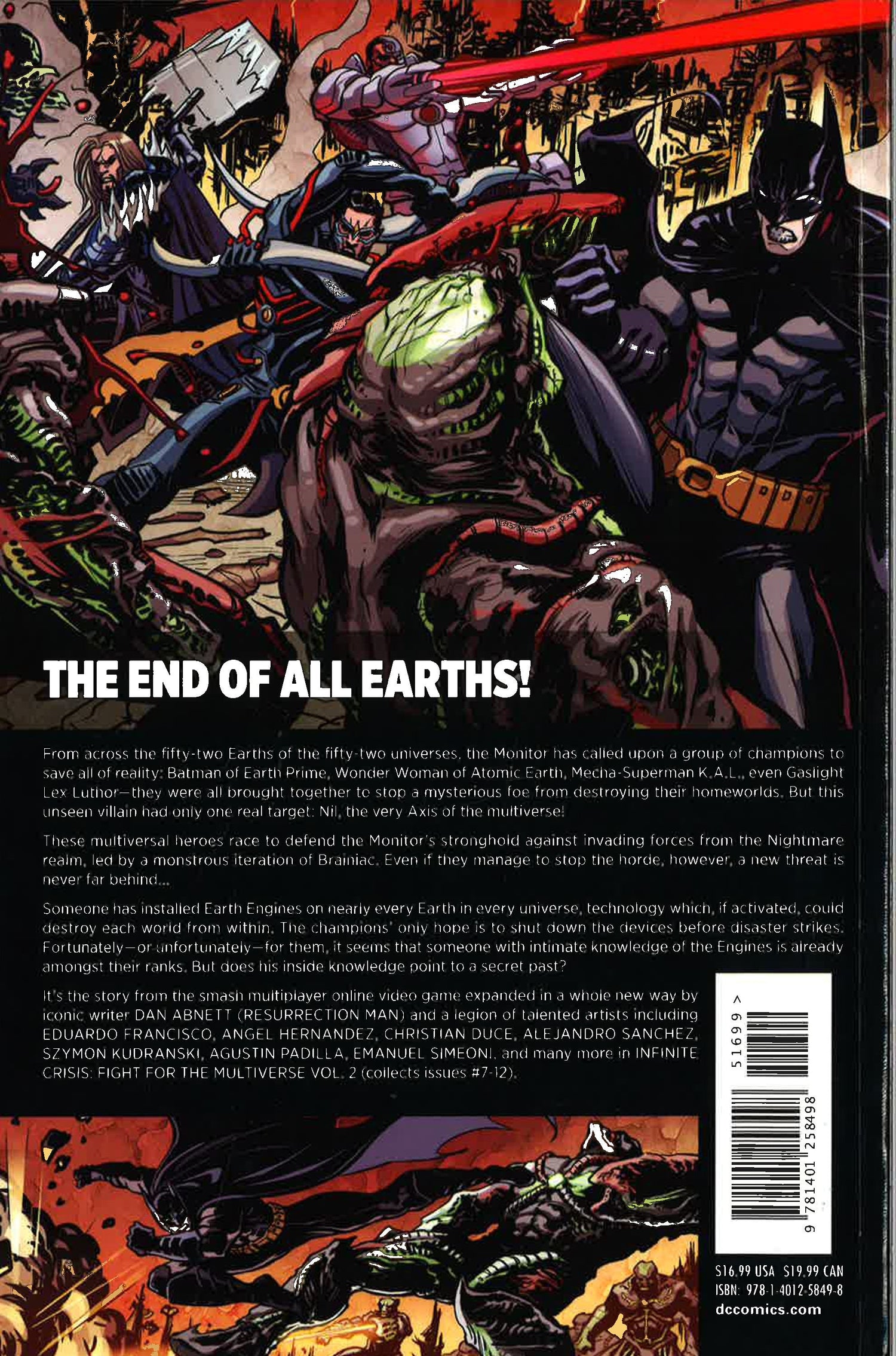 Facing impossible odds against Nightmare Brainiac and his legion of nightmare Metallos, the heroes of the Multiverse's only hope is to reignite the defenses of the Monitor's tower. And the person they have to rely on to do this is none other than Lex Luthor of the Gaslight World! Meanwhile a new adventure begins for Prime Batman and his band of heroes from across the multiverse.Atomic Wonder Woman battles Killer Croc and discovers he's been guarding a secret - a massive, ominous device buried under the surface that is not from her world. Collects Infinite Crisis: Fight for the Multiverse #7-12.