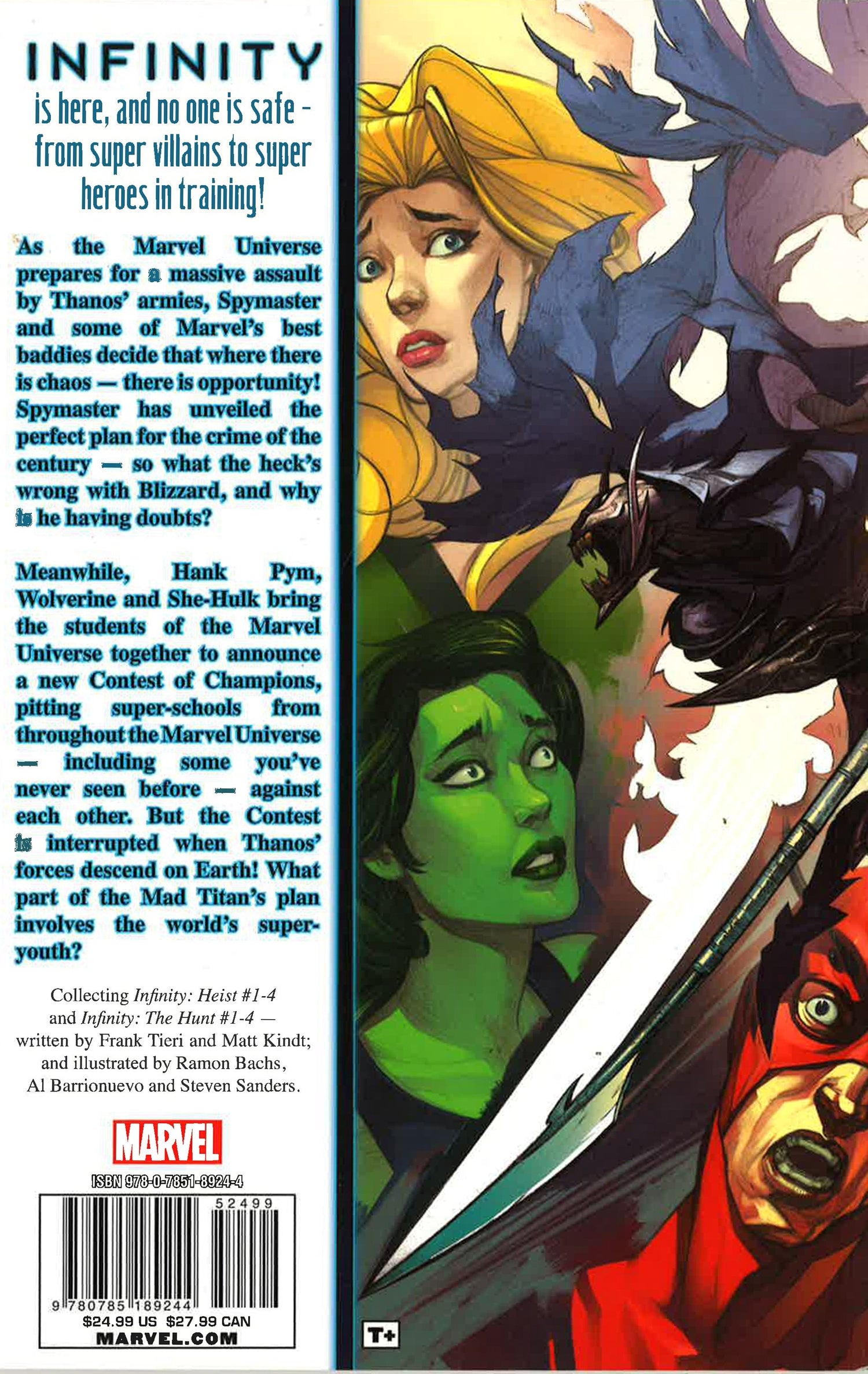 Infinity tie-in! As the Marvel Universe prepares for a massive assault by Thanos' armies, Spymaster and some of Marvel's best baddies decide that where there is chaos - there is opportunity! It's the crime of the century, an alien invasion is all the cover they need, and Spymaster has unveiled the perfect plan - so what the hell's wrong with Blizzard, and why is he having doubts? Frank Tieri, Ramon Bachs and Al Barrionuevo bring you a trip to the dark side, and the biggest score in the galaxy...it's the Infinity Heist! COLLECTING Infinity: Heist 1-4, Infinity: The Hunt 1-4
