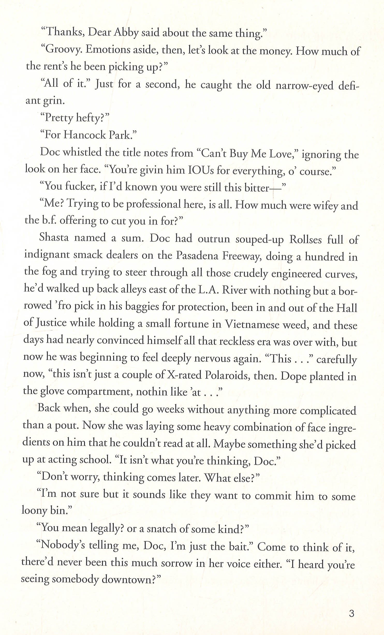 Part noir, part psychedelic romp, all Thomas Pynchon--Private eye Doc Sportello surfaces, occasionally, out of a marijuana haze to watch the end of an era In this lively yarn, Thomas Pynchon, working in an unaccustomed genre that is at once exciting and accessible, provides a classic illustration of the principle that if you can remember the sixties, you weren't there. It's been a while since Doc Sportello has seen his ex- girlfriend. Suddenly she shows up with a story about a plot to kidnap a billionaire land developer whom she just happens to be in love with. It's the tail end of the psychedelic sixties in L.A., and Doc knows that "love" is another of those words going around at the moment, like "trip" or "groovy," except that this one usually leads to trouble. Undeniably one of the most influential writers at work today, Pynchon has penned another unforgettable book.