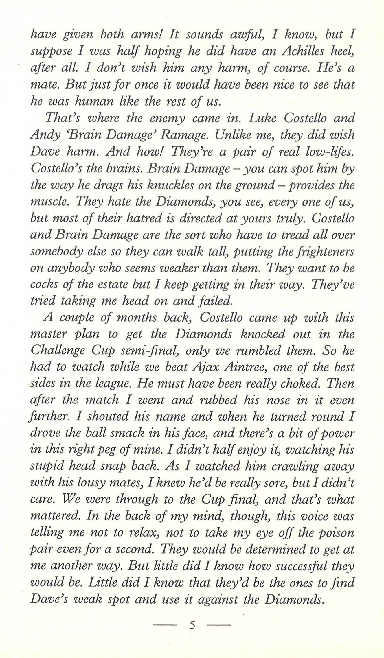 The fourth in an action packed eight book football series from bestselling children's writer Alan Gibbons.The Rough Diamonds are a close knit team. Kev McGovern, their captain, makes sure they work hard and play hard. Kev is stunned when he discovers that Dave has to cope with epilepsy. When he suffers a major attack, the victory the Rough Diamonds are so desperate to win, hangs in the balance.Alan Gibbons is a full-time writer and a visiting speaker and lecturer at schools, colleges and literary events nationwide, including the major book festivals. He lives in Liverpool with his wife and has four grown up children. He travels globally and is known the length and breadth of the country for his high profile Campaign for the Book and school visits. Visit his website at http://www.alangibbons.com, read his blog at http://alangibbons.net, follow him on Twitter at https://twitter.com/mygibbo, Facebook at https://www.facebook.com/alan.gibbons.35 and Flickr at http://www.flickr.com/people/71279646@N08.
