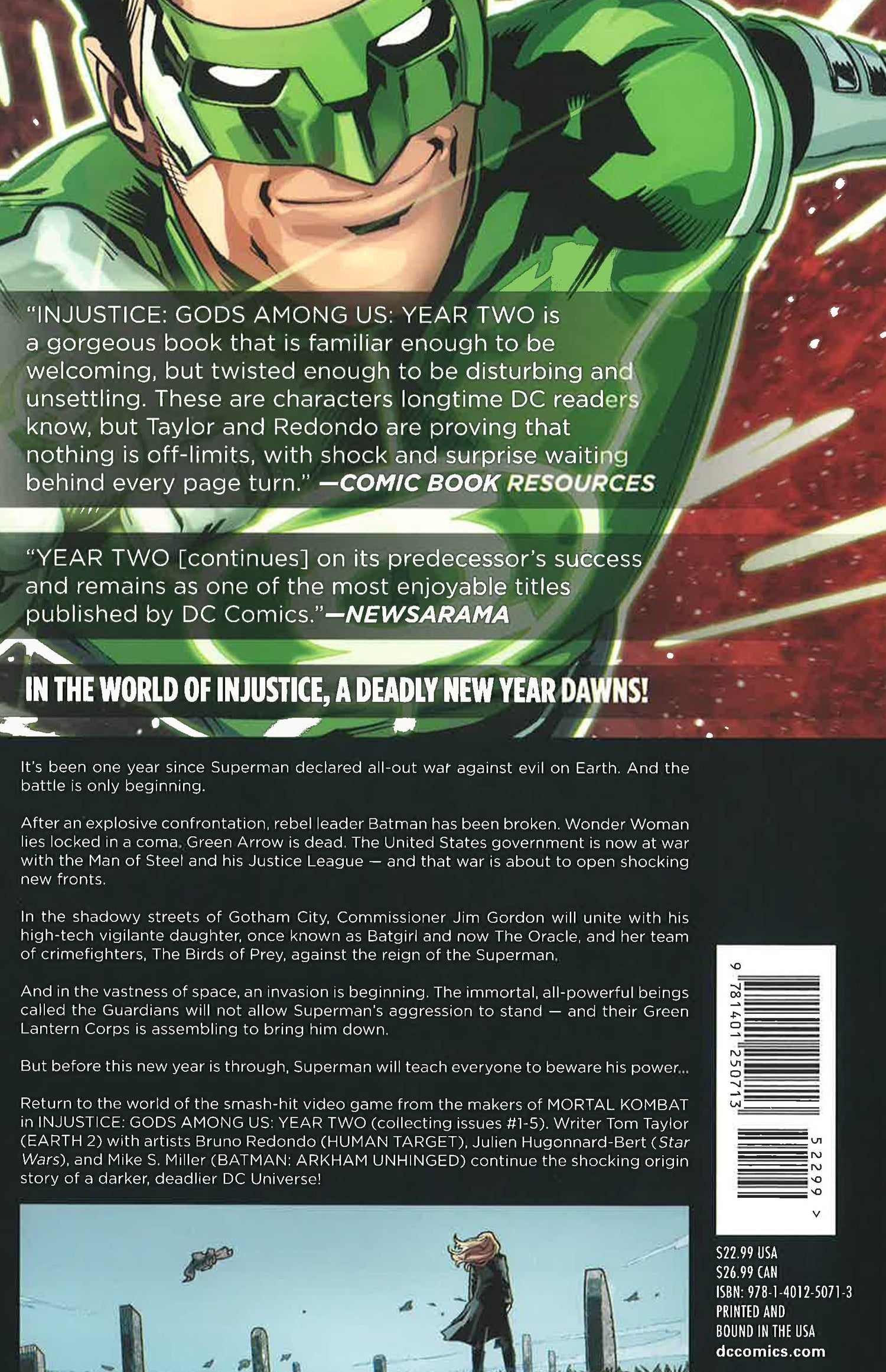 The best-selling prequel to the hit videogame picks up right where it left off! Year one is over - now, year two begins! The death of one of their own has divided Earth's protectors as hero turns against hero. As Superman's iron grip on the world tightens, at the edge of the galaxy, another grave threat approaches... Injustice: Gods Among Us Year 2 continues the story from the New York Times best-selling graphic novel with rising star writer Tom Taylor (Earth 2) and a team of artists including Mike S. Miller, Bruno Redondo and Tom Derenick.