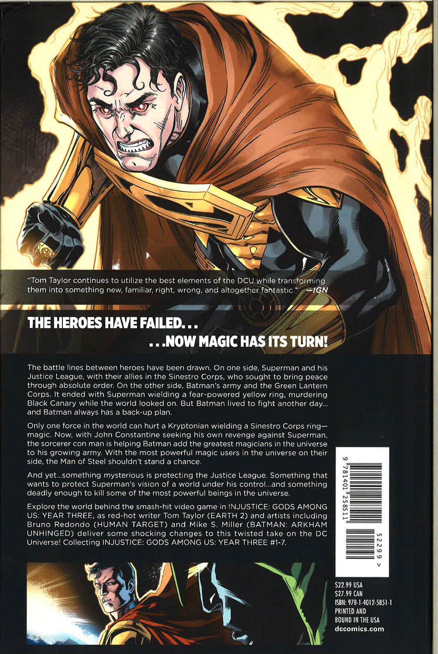 Joining forces with Batman, Constantine tries to unite a disparate team of magical beings, super-heroes and ordinary humans to finally finish off Superman. Collects Injustice: Gods Among Us Year Three #1-6.