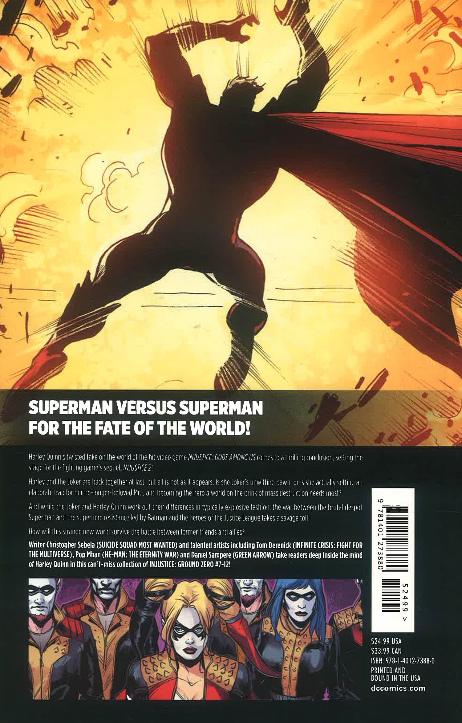 The New York Times best-selling series, written by Christopher Sebela (SUICIDE SQUAD MOST WANTED) with talented artists including Tom Derenick (INFINITE CRISIS: FIGHT FOR THE MULTIVERSE), Pop Mhan (HE-MAN: THE ETERNITY WAR) and Daniel Sampere (GREEN ARROW), takes readers deep inside the mind of Harley Quinn in this can&;t-miss collection of INJUSTICE: GROUND ZERO VOL. 2 stories.