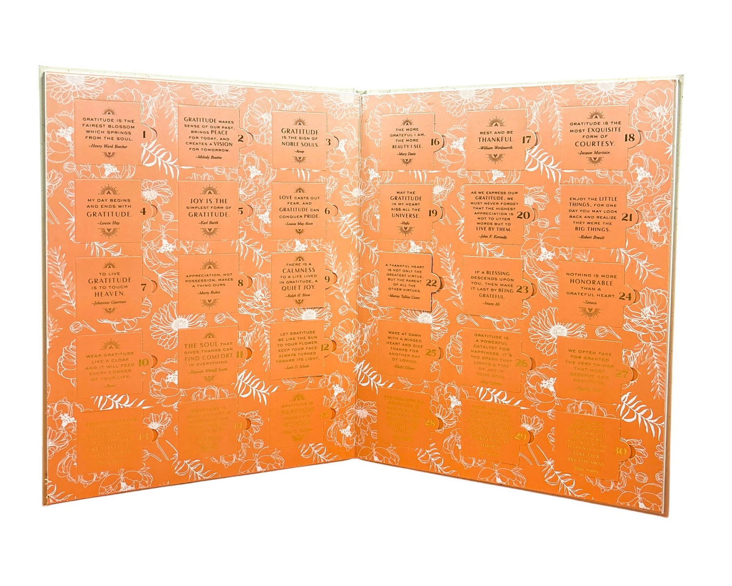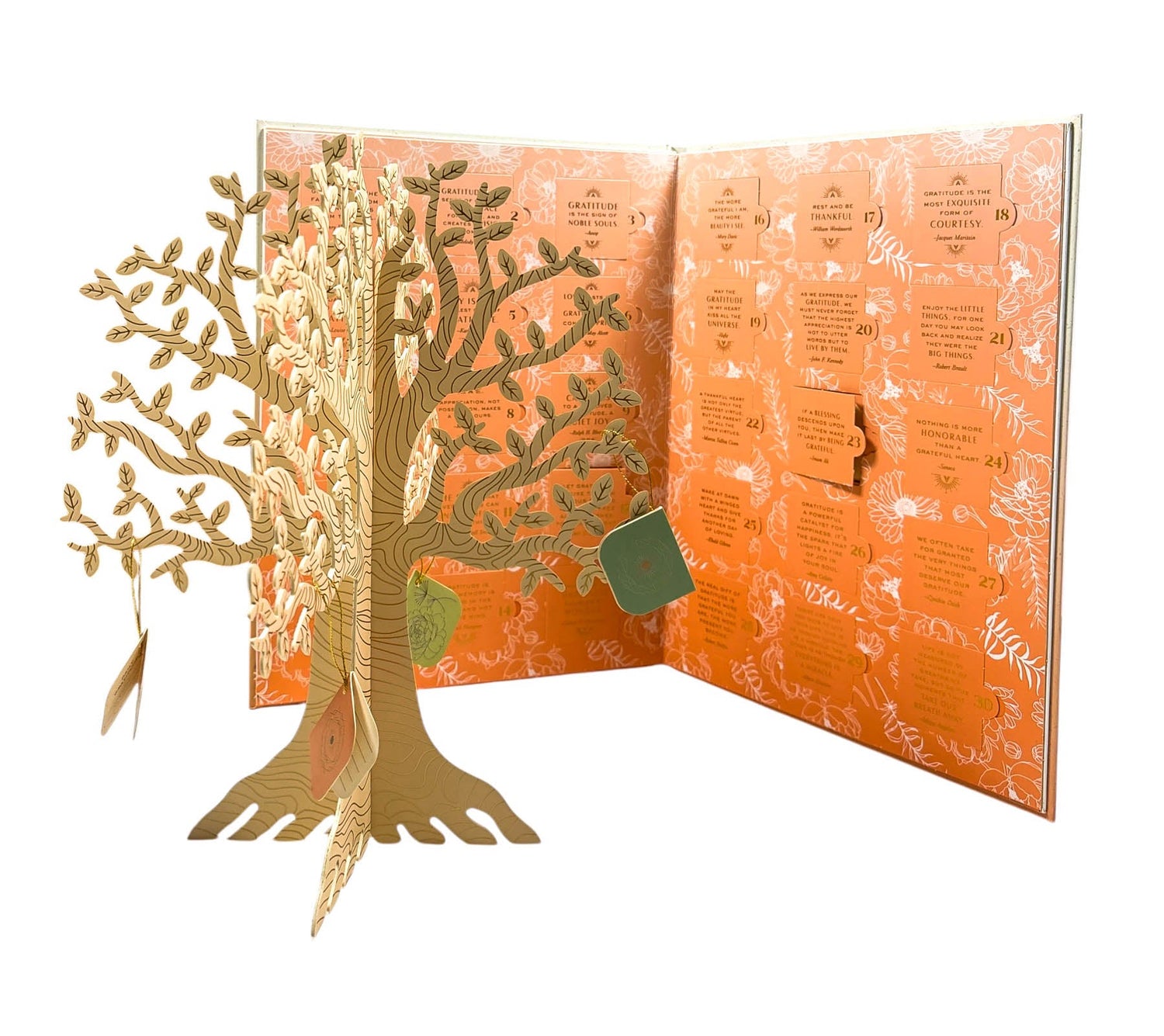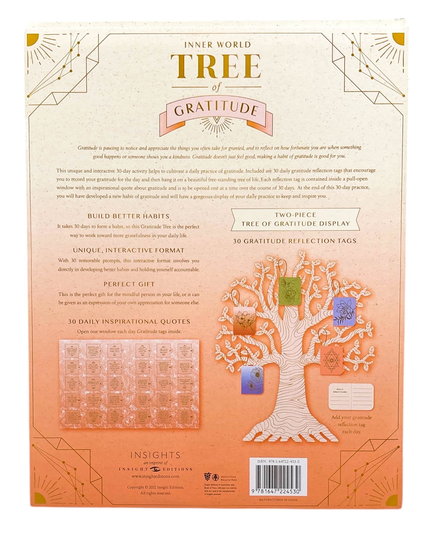 This unique and interactive activity encourages the cultivation of a daily practice of gratitude. Thirty removable daily gratitude tags encourage you to reflect and record your gratitude for the day, and then hang the prompt on a beautiful freestanding tree of life. Each gratitude tag is contained inside a pull-open window with an inspirational quote about gratitude and is to be opened one at a time over the course of 30 days.