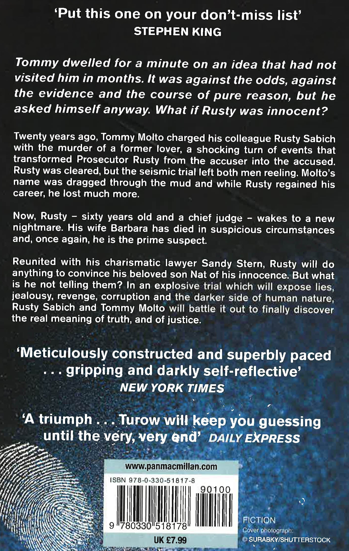 Twenty years ago, Tommy Molto charged his colleague Rusty Sabich with the murder of a former lover; when a shocking turn of events transformed Prosecutor Rusty from the accuser into the accused. Rusty was cleared, but the seismic trial left both men reeling. Molto's name was dragged through the mud and while Rusty regained his career, he lost much more . . . Now, Rusty - sixty years old and a chief judge - wakes to a new nightmare. His wife Barbara has died in suspicious circumstances and once again, he is the prime suspect. Reunited with his charismatic lawyer Sandy Stern, Rusty will do anything to convince his beloved son Nat of his innocence. But what is he hiding? In an explosive trial which will expose lies, jealousy, revenge, corruption and the darker side of human nature, Rusty Sabich and Tommy Molto will battle it out to finally discover the real meaning of truth, and of justice.