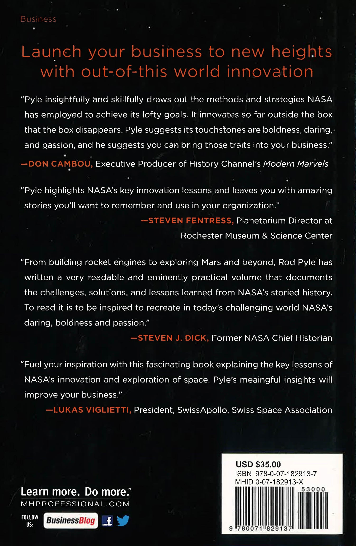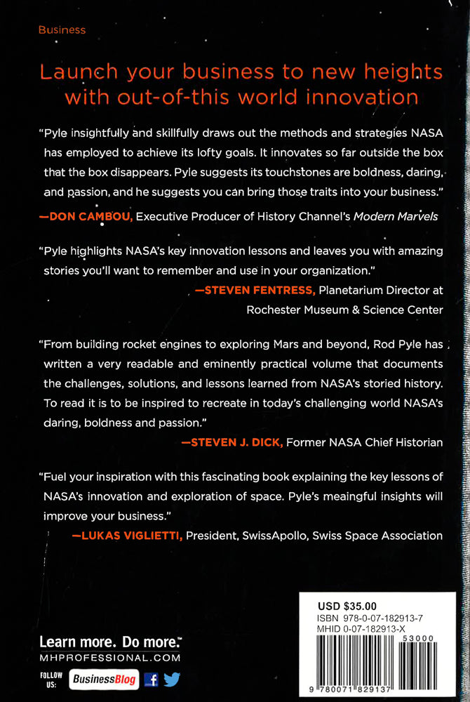 Launch your business to new heights with out-of-this world innovationFor over half a century, NASA has delivered a continuous stream of innovative accomplishments that have inspired the world. Neil Armstrong walking on the moon, the space shuttle pioneering reusable space planes, Mars rovers exploring the red planet--the list goes on. We read the stories and watch the footage, and as impossible as these achievements seem, NASA makes them look easy.The most innovative organization in history, NASA holds an otherworldly mystique for those of us who look on in awe. But behind every one of NASA's amazing innovations liecarefully managed operations, just like any other organization.Innovation the NASA Way provides practical, proven lessons that will help you envision the future of your organization with clarity, meet every challenge with tenacity, and manage innovation with groundbreaking creativity.NASA insider Rod Pyle has used the agency's unique methods for driving innovation to train leaders from eBay, the Federal Reserve, Michelin tires, Conoco/Phillips, andmany other Fortune 100 and 500 companies. now, for the first time, NASA's cutting-edge strategies for nurturing and fostering innovation are revealed.Innovation the NASA Way takes you on a tour through the programs that pushed the envelope on the agency's leadership and managerial capacity. It describes the seemingly impossible tasks NASA personnel faced, explains how each challenge was met with forward-looking management methods, and describes the extraordinary innovations that resulted.Learn how NASA built the Lunar Module, the first true spaceship; created the Saturn V's F-1 rocket motor, the most powerful ever built; and how it creates partnerships with the new players in space-private entrepreneurs.These are just a few of the projects covered in the book.Space exploration may be NASA's mission, but its innovative leadership practices are founded on solid, down-to-earth methods anyone can apply, anywhere.PRAISE FOR INNOVATION THE NASA WAY:"Pyle insightfully and skillfully draws out the methods and strategies naSa has employed to achieve its lofty goals. It innovates so far outside the box that the box disappears. Pyle suggests its touchstones are boldness, daring, and passion, and he suggests you can bring those traits into your business." -- DON CAMBOU, executive Producer of History Channel's Modern Marvels"Pyle highlights NASA's key innovation lessons and leaves you with amazing stories you'll want to remember and use in your organization." -- STEVEN FENTRESS, Planetarium Director at Rochester Museum & Science Center"From building rocket engines to exploring Mars and beyond, Rod Pyle has written a very readable and eminently practical volume that documents the challenges, solutions, and lessons learned from NASA's storied history. To read it is to be inspired to recreate in today's challenging world NASA's daring, boldness and passion." -- STEVEN J. DICK, Former NASA Chief historian"Fuel your inspiration with this fascinating book explaining the key lessons of NASA's innovation and exploration of space. Pyle's meaingful insights willimprove your business." -- LUKAS VIGLIETTI, President, Swissapollo, Swiss Space Association