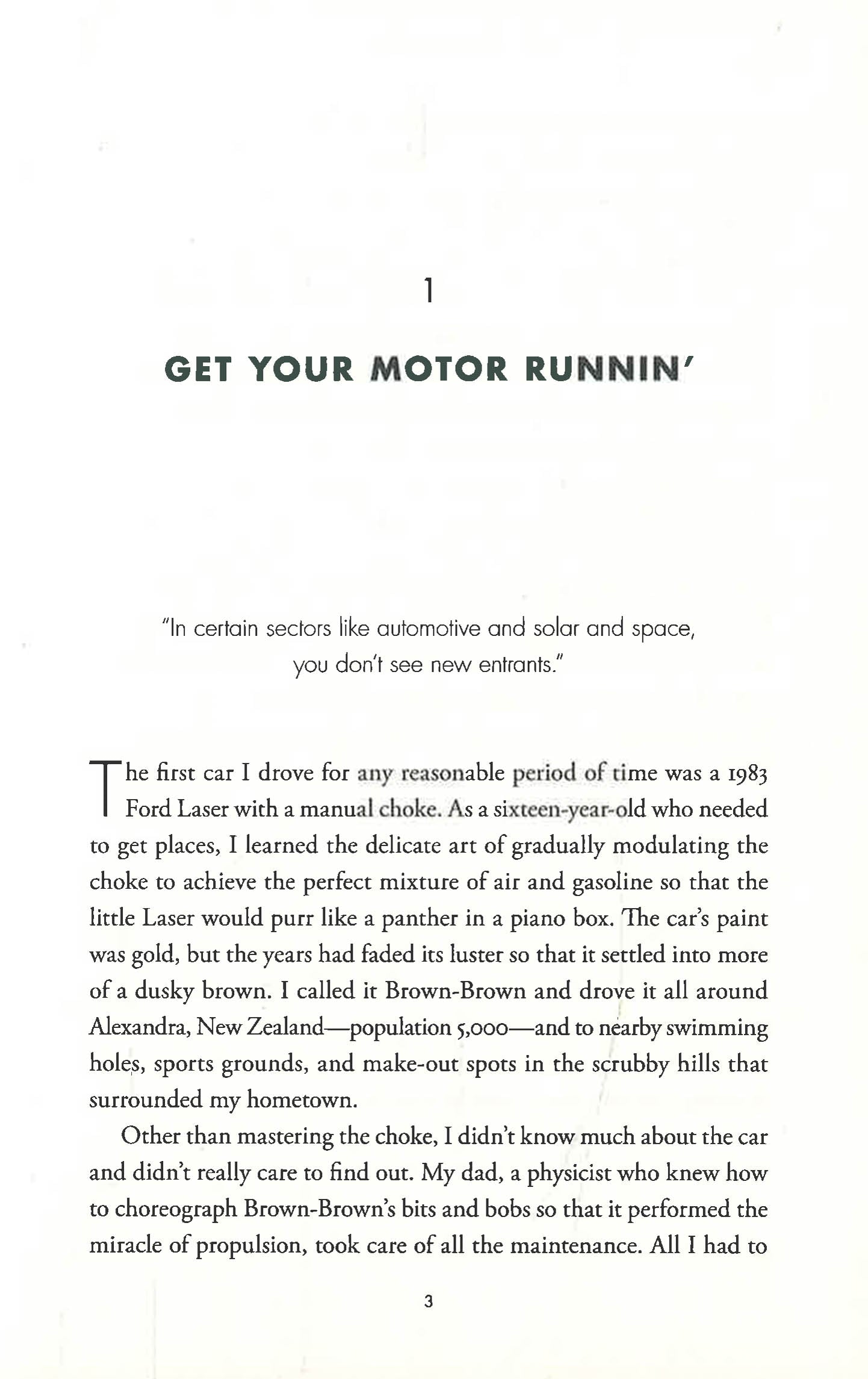 As McKenzie's rigorously reported account shows, Tesla has triggered frenzied competition from newcomers and traditional automakers alike, but it retains an edge because of its expansive infrastructure and the stupendous battery factory it built in the Nevada desert. The popularity of electric cars is growing around the world, especially in China, and McKenzie interviews little-known titans who have the money and the market access to power a global electric car revolution quickly and decisively.