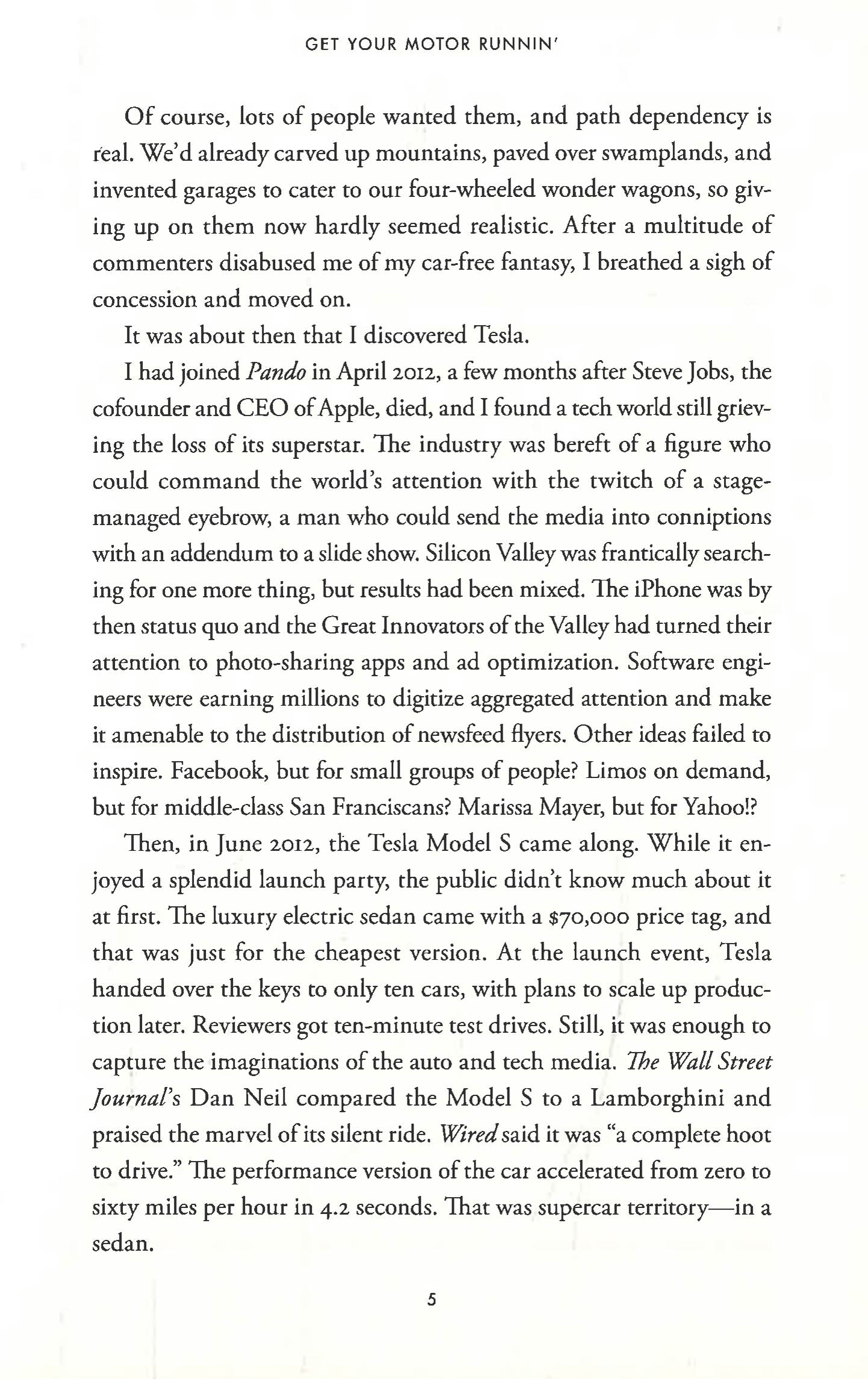 Hamish McKenzie tells how a Silicon Valley start-up's wild dream came true. Tesla is a car company that stood up against not only the might of the government-backed Detroit car manufacturers but also the massive power of Big Oil and its benefactors, the infamous Koch brothers.