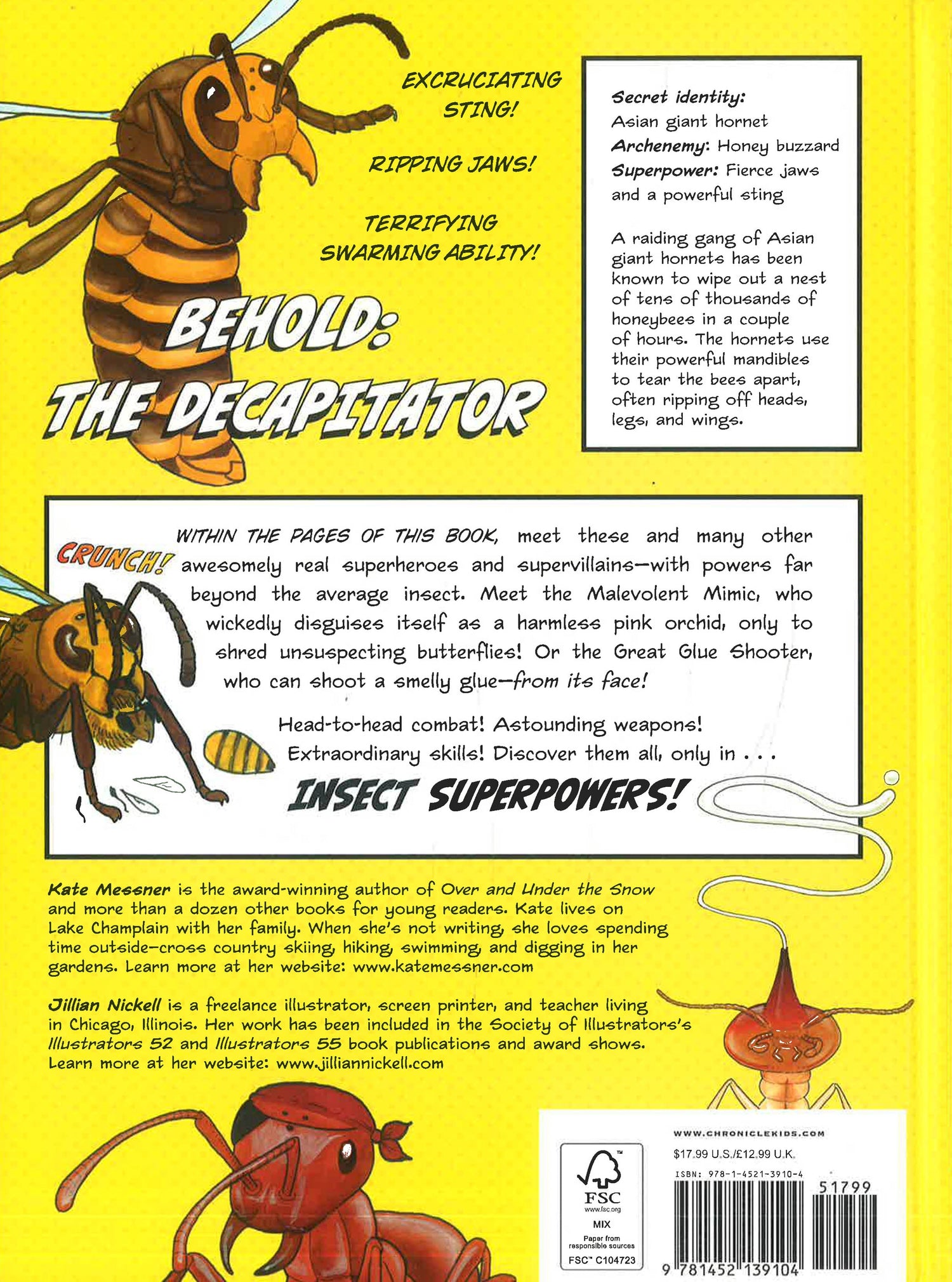 Insect Superpowers is an action-packed nonfiction picture book about the incredible insect abilities found in the natural world. Packaged comic book style, this book explores 18 awesomely real superheroes and supervillains, who each possess powers far beyond the average insect.