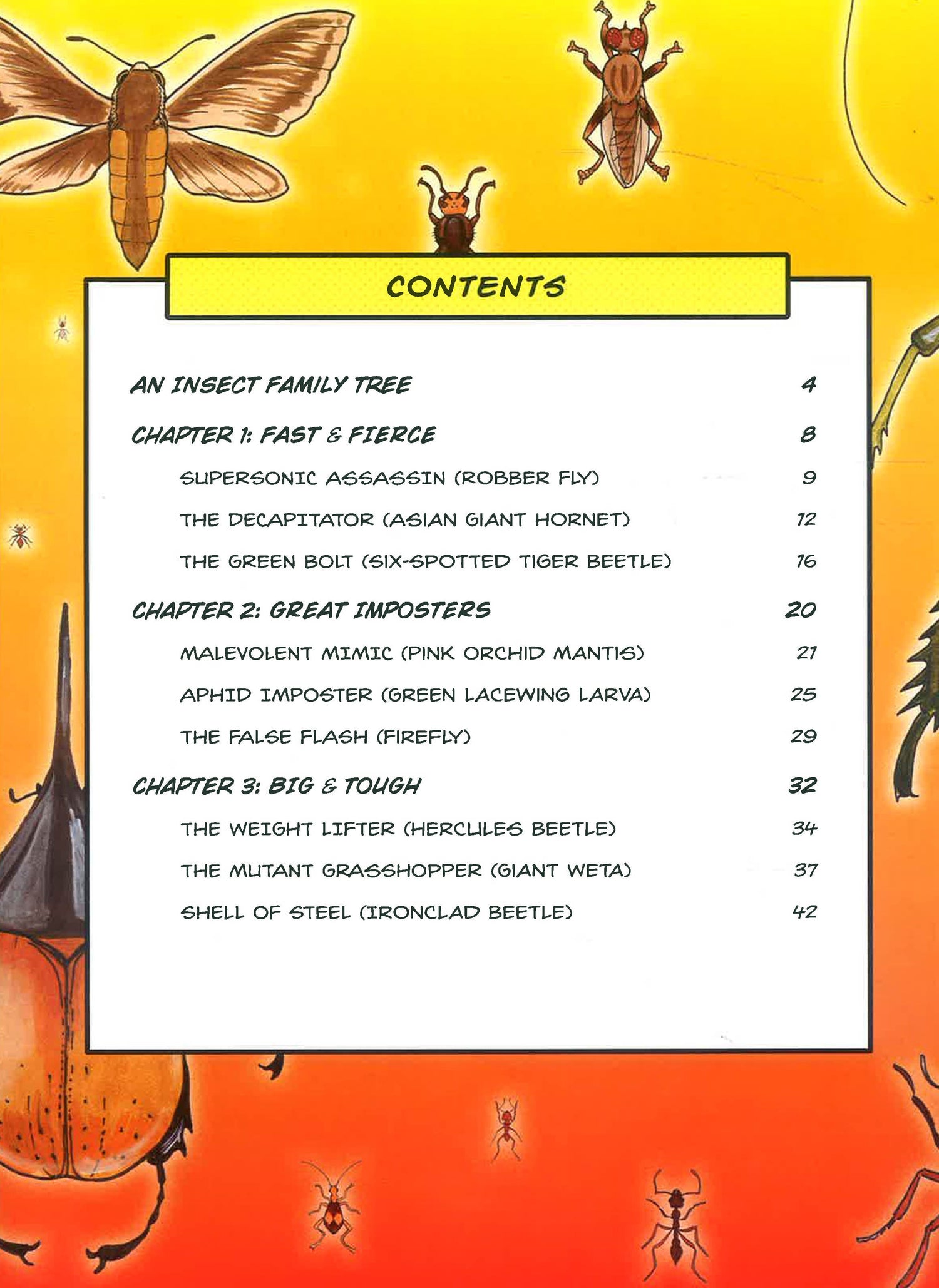 • Presents insects as superheroes and supervillains who excel in head-to-head combat, astounding weapons, and extraordinary skills