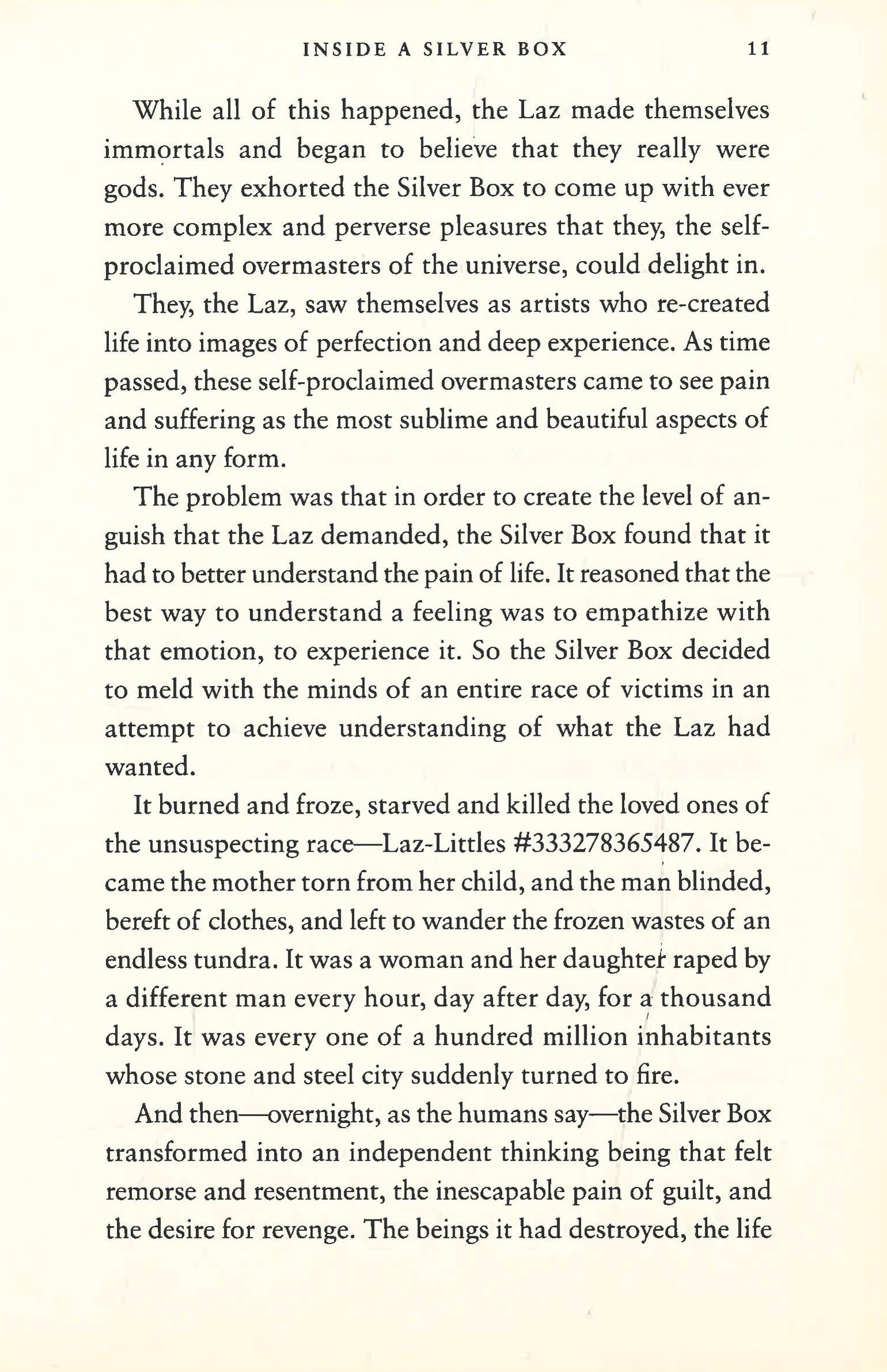 Two people brought together by a horrific act are united in a common cause by the powers of the Silver Box. The two join to protect humanity from destruction by an alien race, the Laz, hell-bent on regaining control over the Silver Box, the most destructive and powerful tool in the universe. The Silver Box will stop at nothing to prevent its former master from returning to being, even if it means finishing the earth itself.