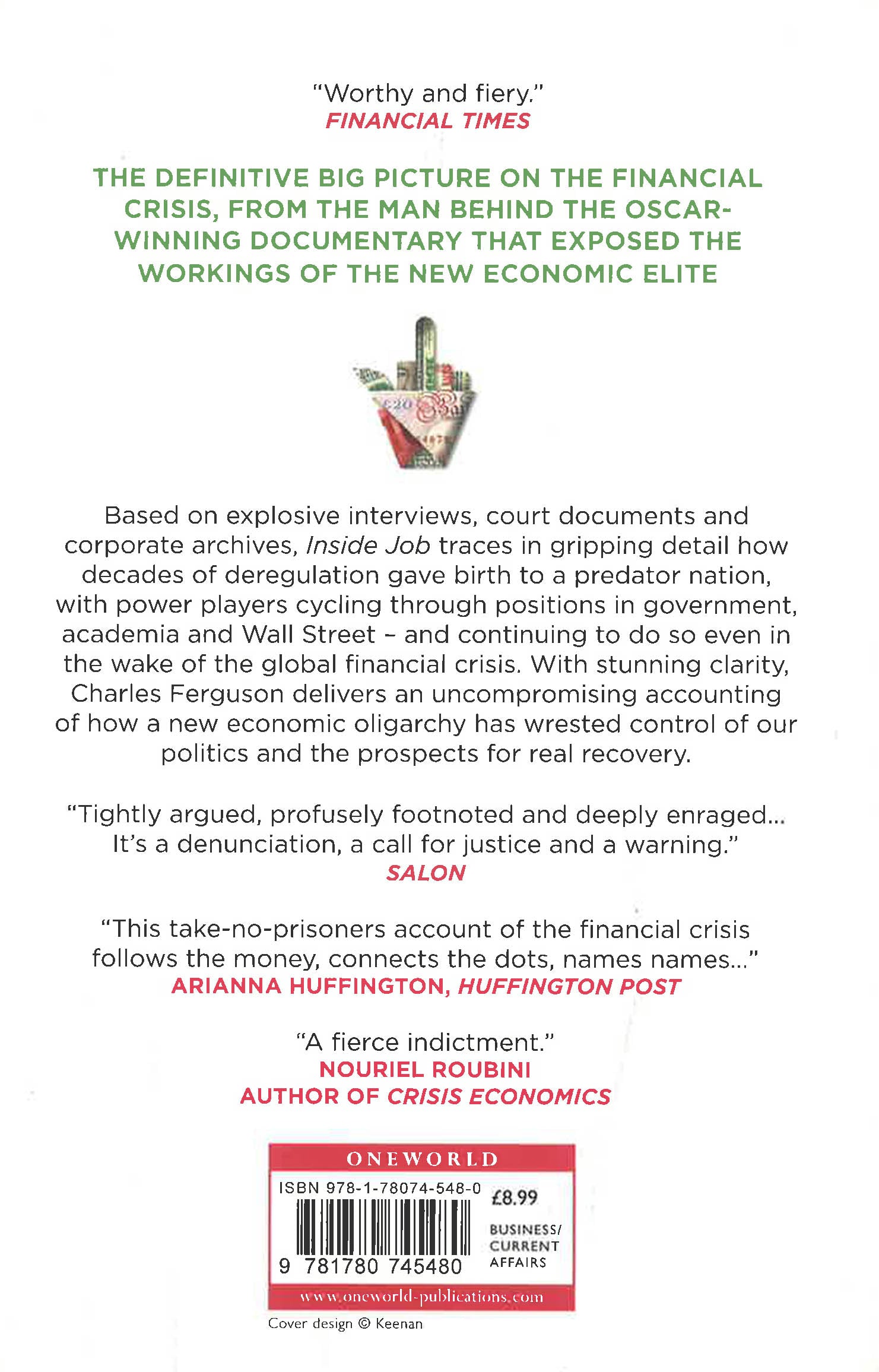 The definitive big picture on the financial crisis, from the man behind the Oscar-winning documentary that exposed the workings of the new economic elite Based on explosive interviews, court documents and corporate archives, Inside Job traces in gripping detail how decades of deregulation gave birth to a predator nation, with power players cycling through positions in government, academia and Wall Street - and continuing to do so even in the wake of the global financial crisis. With stunning clarity, Charles Ferguson delivers an uncompromising accounting of how a new economic oligarchy has wrested control of our politics and the prospects for real recovery.