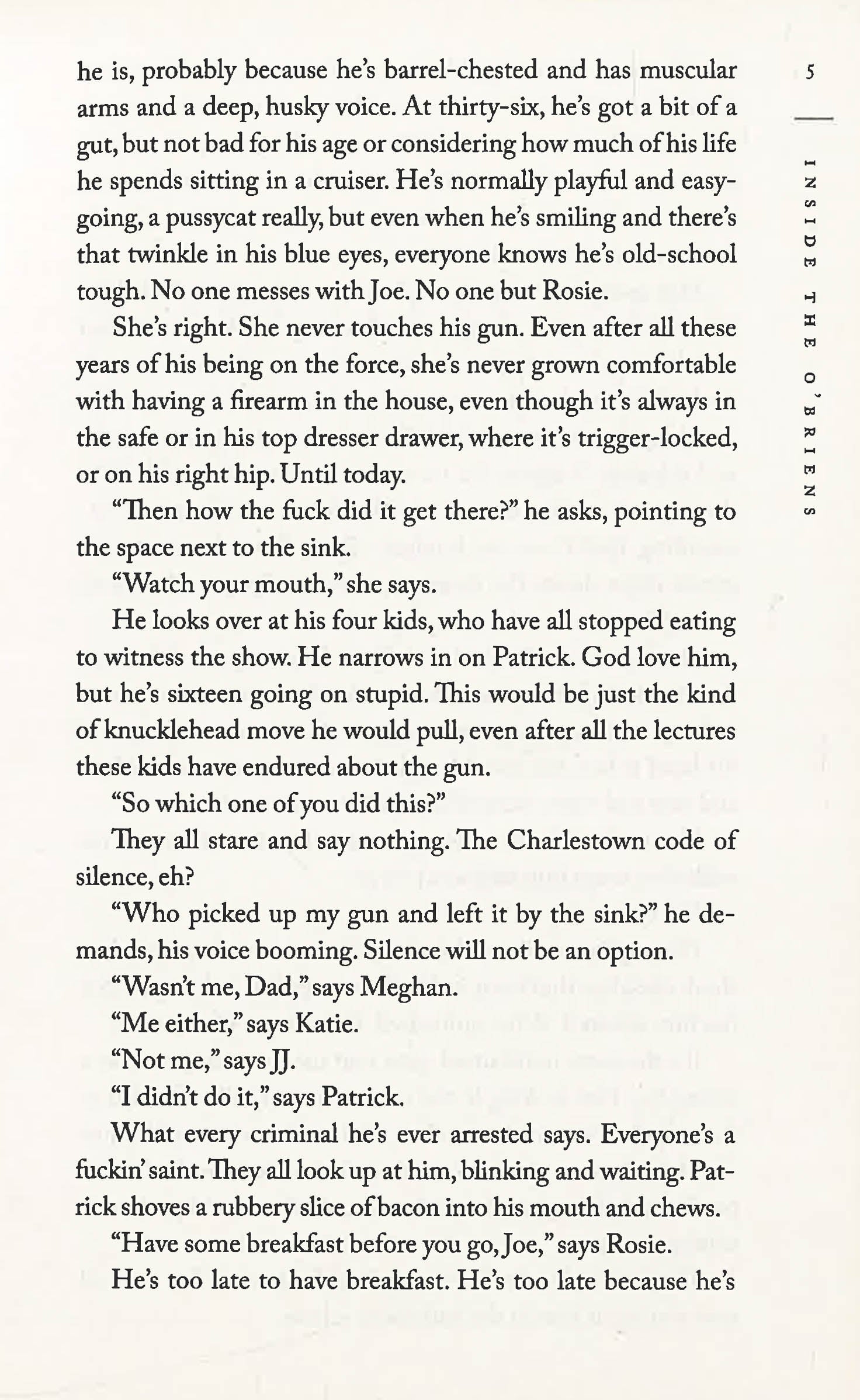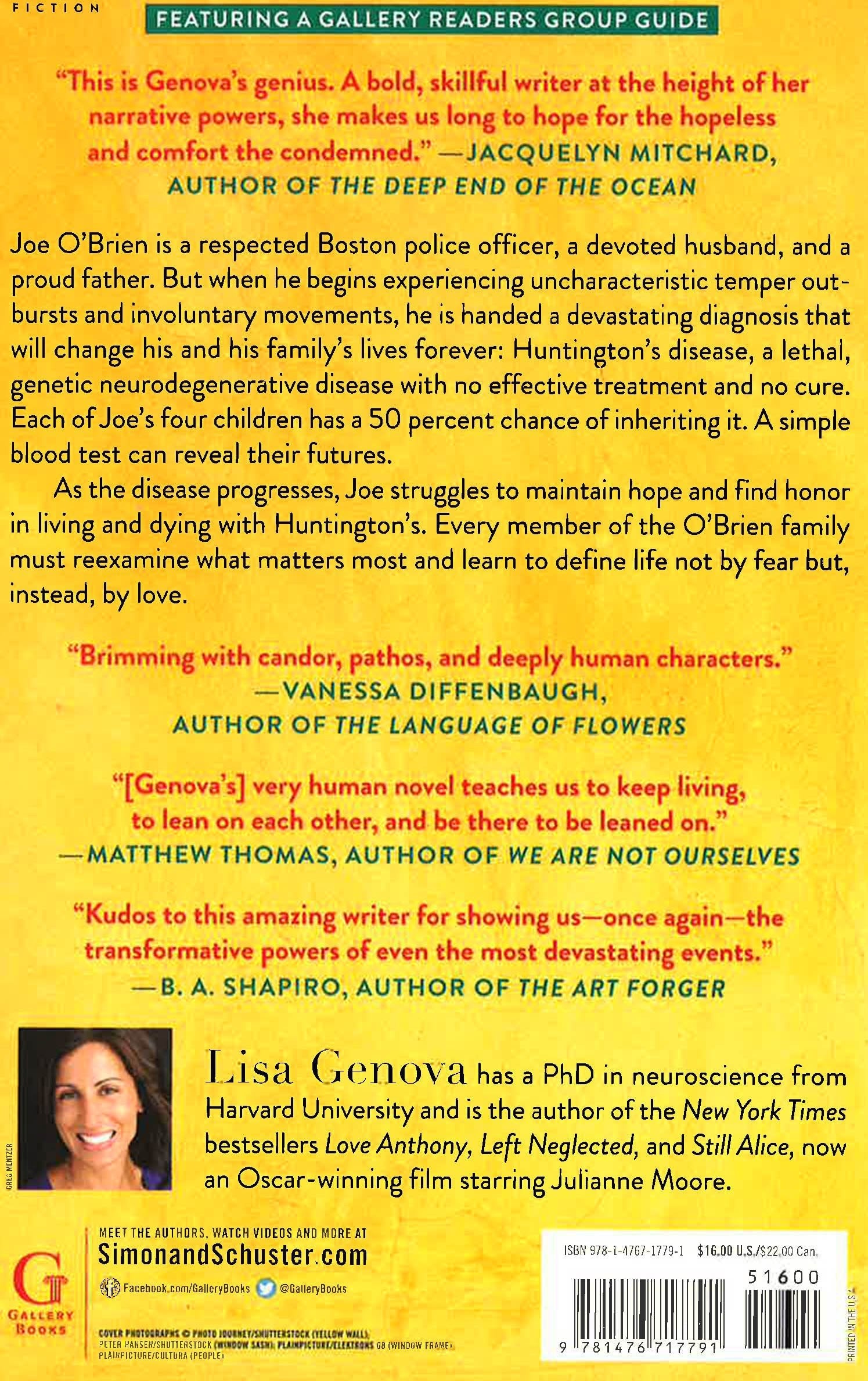 Joe O’Brien is a forty-three-year-old police officer from the Irish Catholic neighborhood of Charlestown, Massachusetts. A devoted husband, proud father of four children in their twenties, and respected officer, Joe begins experiencing bouts of disorganized thinking, uncharacteristic temper outbursts, and strange, involuntary movements. He initially attributes these episodes to the stress of his job, but as these symptoms worsen, he agrees to see a neurologist and is handed a diagnosis that will change his and his family’s lives forever: Huntington’s disease.Huntington’s is a lethal neurodegenerative disease with no treatment and no cure, and each of Joe’s four children has a 50 percent chance of inheriting their father’s disease. While watching her potential future in her father’s escalating symptoms, twenty-one-year-old daughter Katie struggles with the questions this test imposes on her young adult life. As Joe’s symptoms worsen and he’s eventually stripped of his badge and more, Joe struggles to maintain hope and a sense of purpose, while Katie and her siblings must find the courage to either live a life "at risk" or learn their fate.