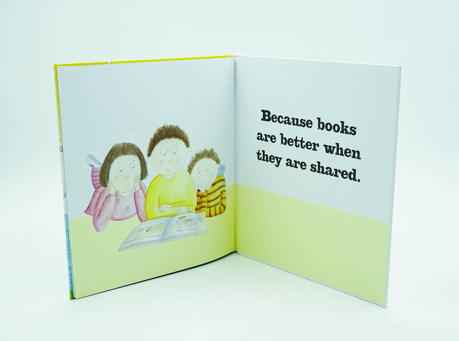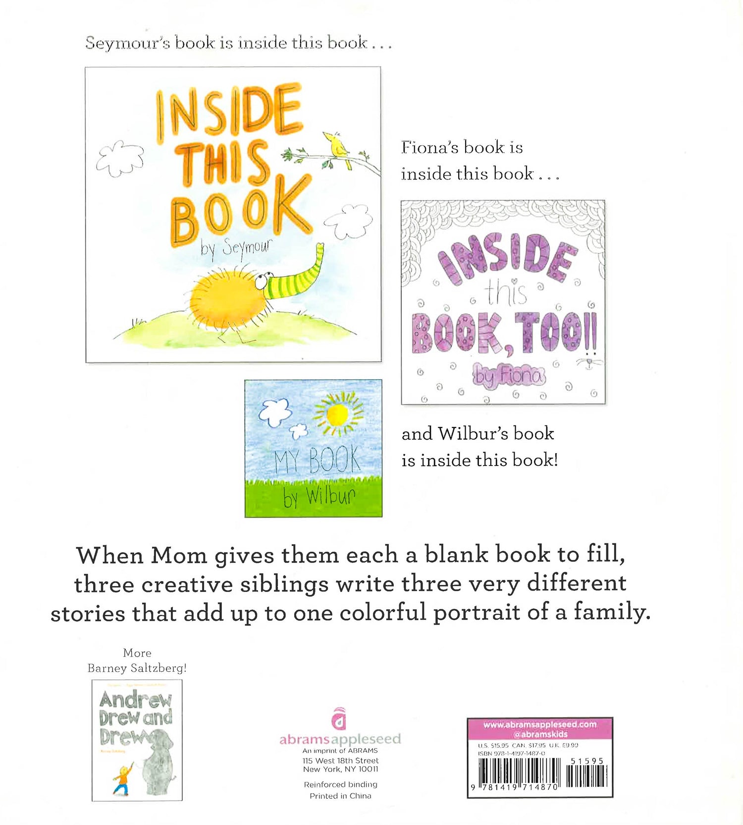 Three siblings create three books of their own using blank paper that they bind together and inspire each other's stories.