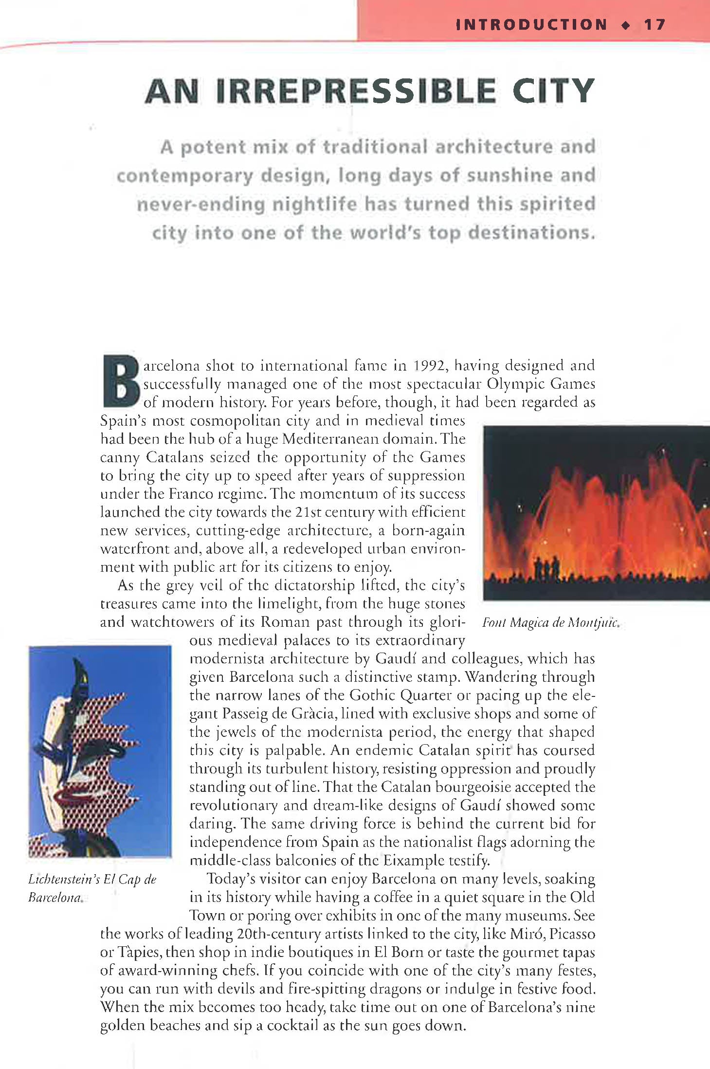 Barcelona is one of the world’s most-visited and stylish cities. Whether you want to wander La Rambla, admire the beautiful architecture, or visit the numerous colorful markets, Insight City Guide Barcelona will make sure you have the quintessential Barcelona experience. Features by local writers delve into topics including festivals, shopping, and urban regeneration, while evocative accounts of the city’s districts bring Barcelona to life, from the Gothic Quarter (Barri Gòtic) to the culturally rich district of El Raval. Full-color photography and maps help you navigate with ease and our detailed Travel Tips gives you all the practical information you need to plan your trip, including our selection of the best and most authentic hotel and restaurants.