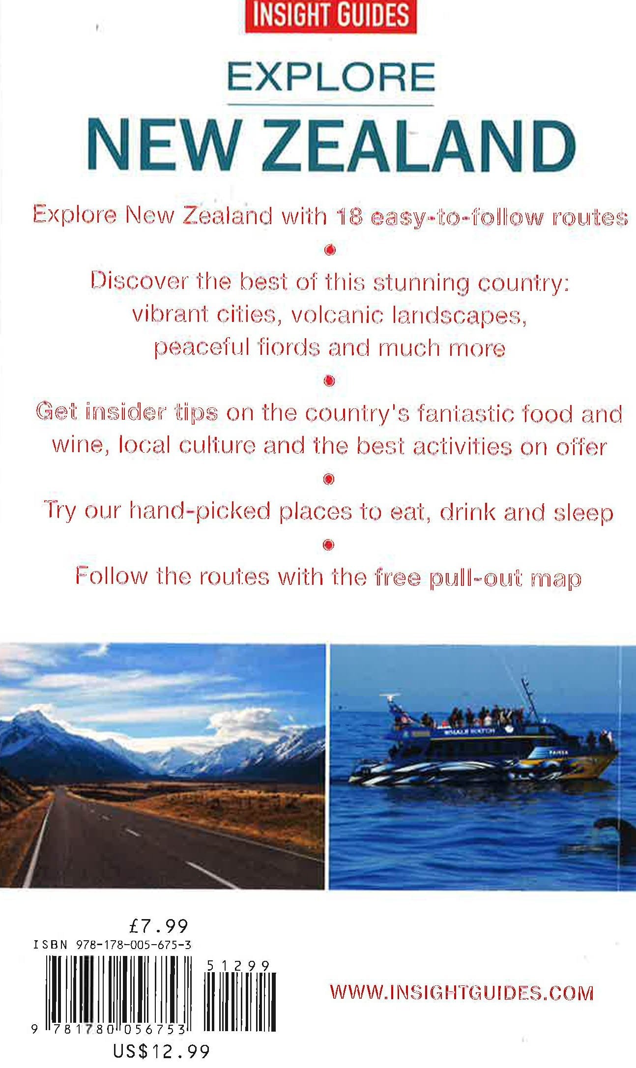 New Zealand is regularly voted the best country in the world to visit and with its unparalleled scenery, range of exciting activities and charming cities, it's not hard to see why. Explore New Zealand is part of a new series and is the ideal pocket companion when discovering this beautiful, diverse country: a full-colour guide containing 18 easy-to-follow driving and walking routes which lead you from Auckland's city sights and Wellington's cultural buzz to the volcanic wonderland of Rotorua, the heights of Franz Josef Glacier, and Milford Sound fiord. Insight's trademark cultural coverage perfectly sets the routes in context, with introductions to New Zealand's excellent food and wine, entertainment options and key historical dates. The best places to eat and drink are highlighted in each route and in the directory section, which also contains a wealth of practical information, including our selection of hotels to suit all budgets. All routes are plotted on the useful pull-out map, and evocative photography brings this stunning country to life.