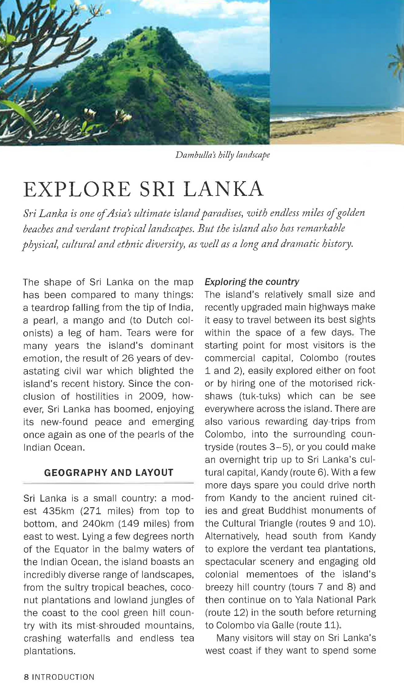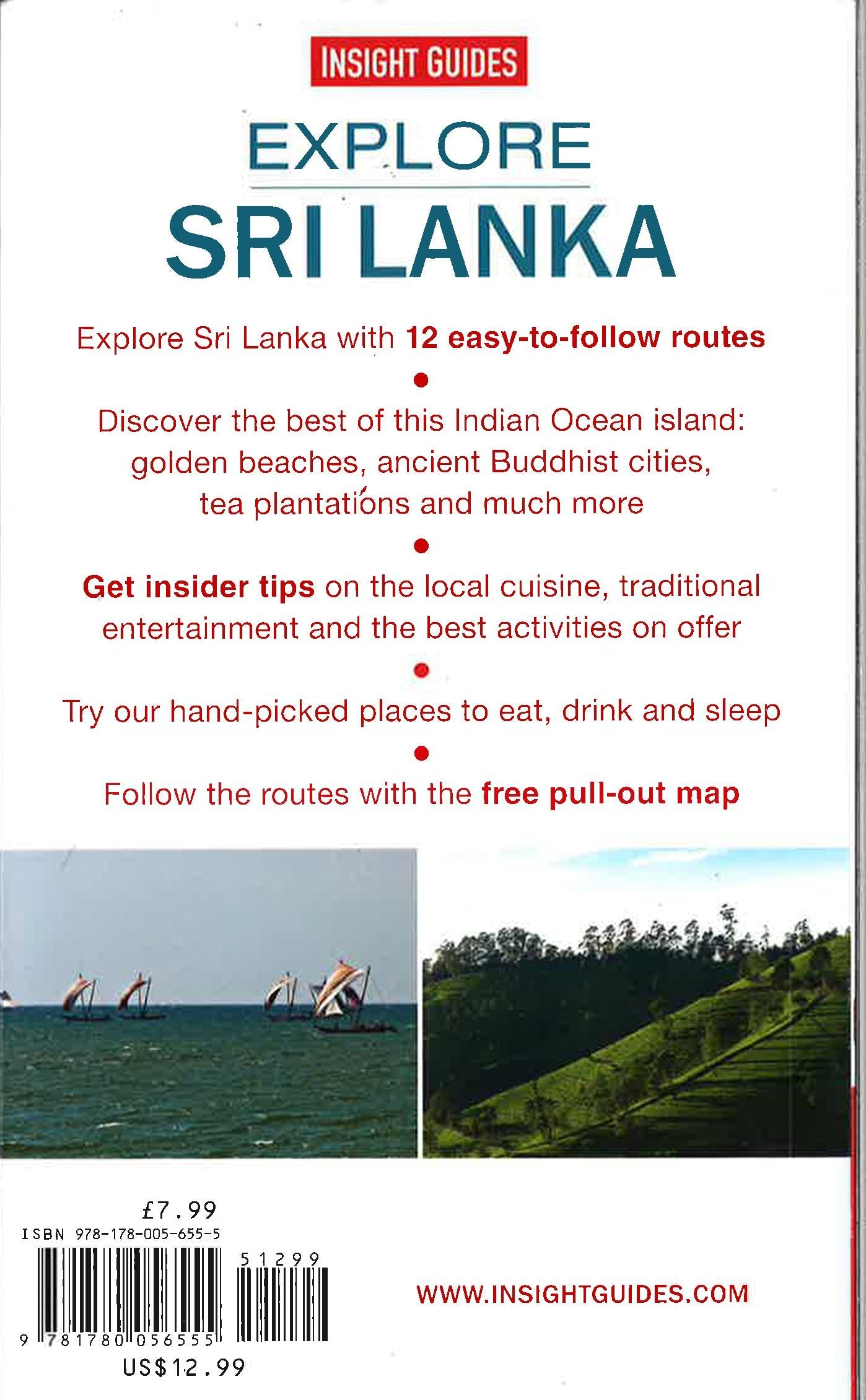 Explore Sri Lanka, part of a brand-new series launch for March 2014, is the ideal pocket companion for your trip: a full-color guide containing easy-to-follow routes that will take you from the bustling capital Colombo to the tea terraces in the hill country, by way of charming Galle Fort and the cultural triangles great Buddhist temples. The lure of golden sands entices visitors to Sri Lanka, but this Indian Ocean island is also home to ancient cities, diverse cultures and immensely varied landscapes. Chapters on Sri Lankas mouth-watering food and drink, traditional entertainment, and options for both sport and relaxation set the routes in context and feature Insights trademark cultural coverage. Hand-picked places to eat and drink are highlighted in each tour and in the directory section, which contains a wealth of useful practical information, including a range of carefully selected hotels to suit all budgets. All routes are plotted on the useful pull-out map, and the stunning photography perfectly captures the beauty of this beguiling tropical island.