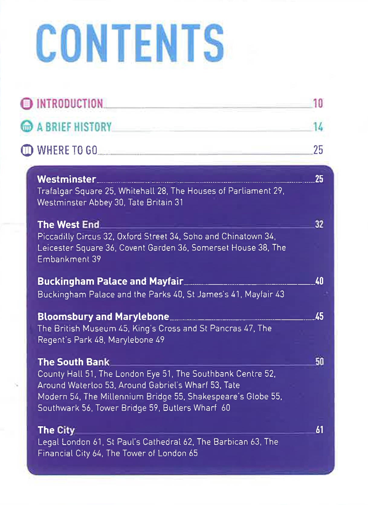 - Covers: Westminster; The West End; Buckingham Palace and Mayfair; Bloomsbury and Marylebone; The South Bank; The City; Kensington and Chelsea; North London; East London; Southeast London; Southwest London