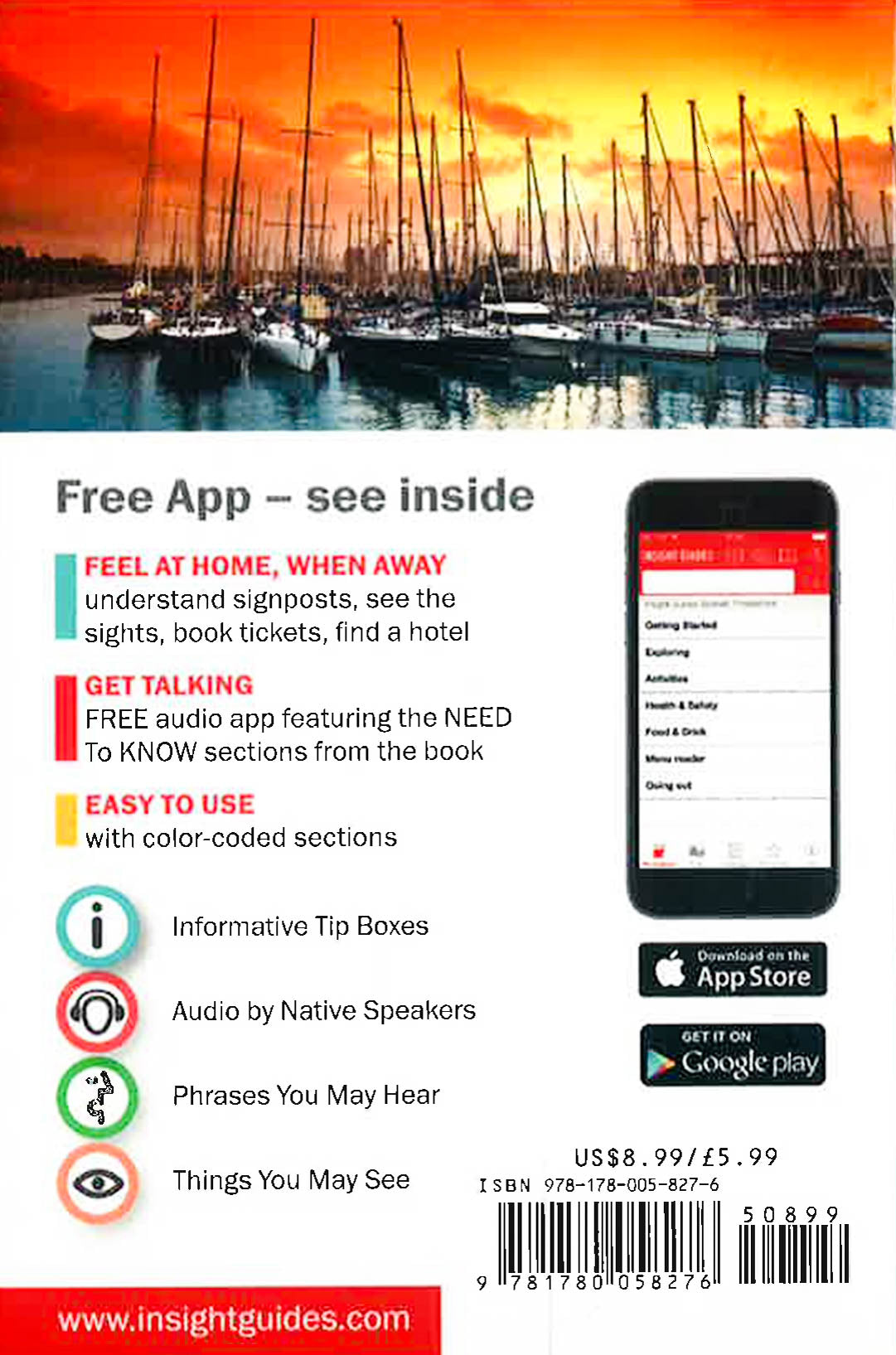 Insight Guides Spanish Phrasebook andDictionary: all the words and phrases you needto feel at home, when away. Includes free app.Compact, clear, and packed with key words and phrases, thispocket-sized Spanish phrasebook and dictionary (with free app) is a trusty travelcompanion. It's all you need to make yourself understood - and to understandothers - when you're out and about in Spain.* Smartly organised by topic (Exploring, Activities,Health and Safety, Food and Drink, Going Out) in colour-coded sections* Includes insider local information, and nativespeaker language tips* Informative introduction provides clear pronunciation guidelines, andgrammar basics to help you get to grips with the language* Includes an innovative extra that'sunique in the market - all Insight Guides Phrasebook and Dictionaries come witha free app featuring key phrases from the book, spoken by native speakers topromote perfect pronunciationAbout Insight Guides: Insight Guides is a pioneer offull-colour guide books, with almost 50 years' experience of publishinghigh-quality, visual travel guides with user-friendly, modern design. Weproduce around 400 full-colour print guide books and maps, as well as phrasebooks, picture-packed eBooks and apps to meet different travellers' needs.Insight Guides' unique combination of beautiful travel photography and focus onhistory and culture create a unique visual reference and planning tool toinspire your next adventure.
