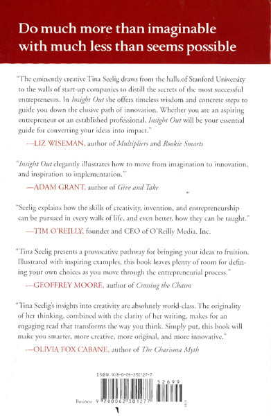 In this revolutionary guide, Stanford University Professor and international bestselling author of inGenius adopts her popular course material to teach everyone how to make imaginative ideas a reality.As a leading expert on creativity, Tina Seelig has continually explored what we can each do to unleash our entrepreneurial spirit.In this revolutionary guide, Stanford University Professor and international bestselling author of inGenius adopts her popular course material to teach everyone how to make imaginative ideas a reality. As a leading expert on creativity, Tina Seelig has continually explored what we can each do to unleash our entrepreneurial spirit. In Insight Out, she offers us the tools to make our ideas a reality. She clearly defines the concepts of imagination, creativity, innovation, and entrepreneurism, showing how they affect each other and how we can unlock the pathway from imagination to implementation, where our ideas then gain the power to inspire the imaginations of others. Drawing on more than a decade of experience as a professor at the Stanford University School of Engineering, Seelig shows readers how to work through the steps of imagination, ideation, innovation, and implementation, using each step to build upon the last, to ultimately create something complex, interesting, and powerful. Coping with today's constant change, everyone needs these skills to conquer challenges and seize the opportunities that arise. Seelig irrefutably demonstrates that these skills can be taught, and shows us how to mobilize our own energy and bring new ideas to life.
