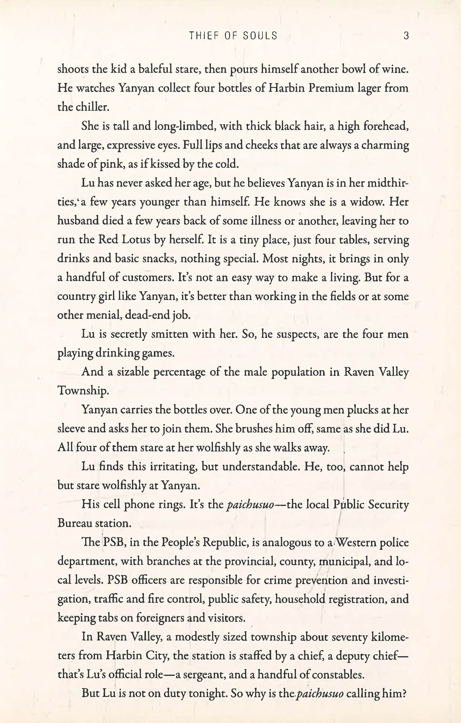 In Brian Klingborg's Thief of Souls, the brutal murder of a young woman in a rural village in Northern China sends shockwaves all the way to Beijing-but seemingly only Inspector Lu Fei, living in exile in the small town, is interested in justice for the victim.