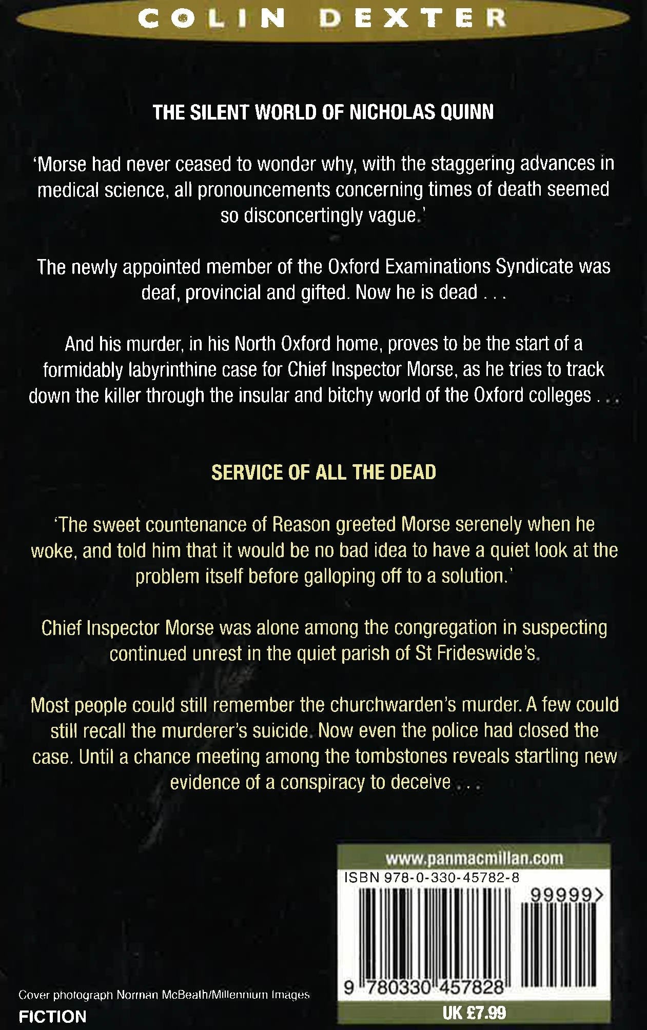 The Silent World of Nicholas Quinn is followed by the fourth Inspector Morse book, Service of All the Dead.