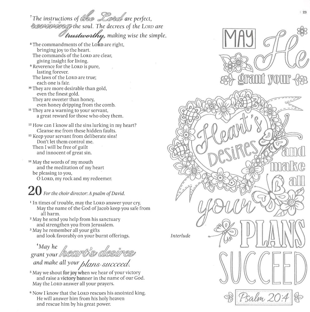Inspire: Psalms includes all of the cherished features from the original Inspire Bible displayed beautifully in a coloring-book-style edition of the book of Psalms. This charming, square-trimmed, oversized edition of the ancient prayers and praises of Israel contains God's inspired word displayed in a new way to inspire Scripture meditation and response. Inspire: Psalms is a single-column edition of the full book of Psalms combined with key verses displayed beautifully, including words to color in right within the Bible text. There are over 50 Scripture line-art illustrations in the wide margins to color and plenty of extra space for creative journaling. Inspire: Psalms features thicker, uncoated art paper, befitting of popular coloring books, which limits bleed-through and allows for use of even more markers, supplies, and techniques for coloring and creative journaling. Inspire: Psalms is great for people wanting to connect to the Psalms through art and extends a beautiful invitation to slow down and soak in God's Word while coloring or creative-art-journaling on the pages.