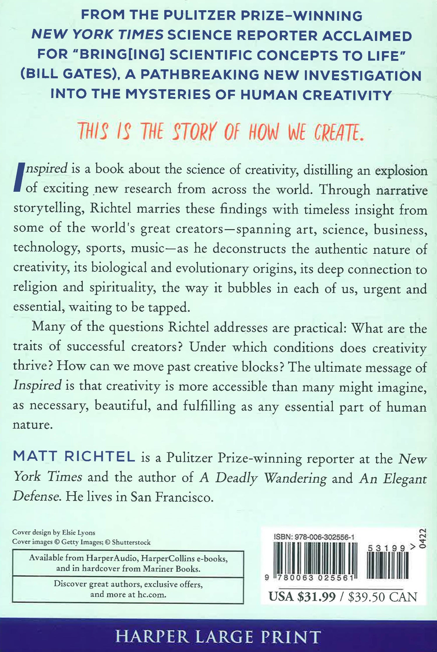Many of the questions Richtel addresses are practical: What are the traits of successful creators? Under which conditions does creativity thrive? How can we move past creative blocks? The ultimate message of Inspired is that creativity is more accessible than many might imagine, as necessary, beautiful, and fulfilling as any essential part of human nature.