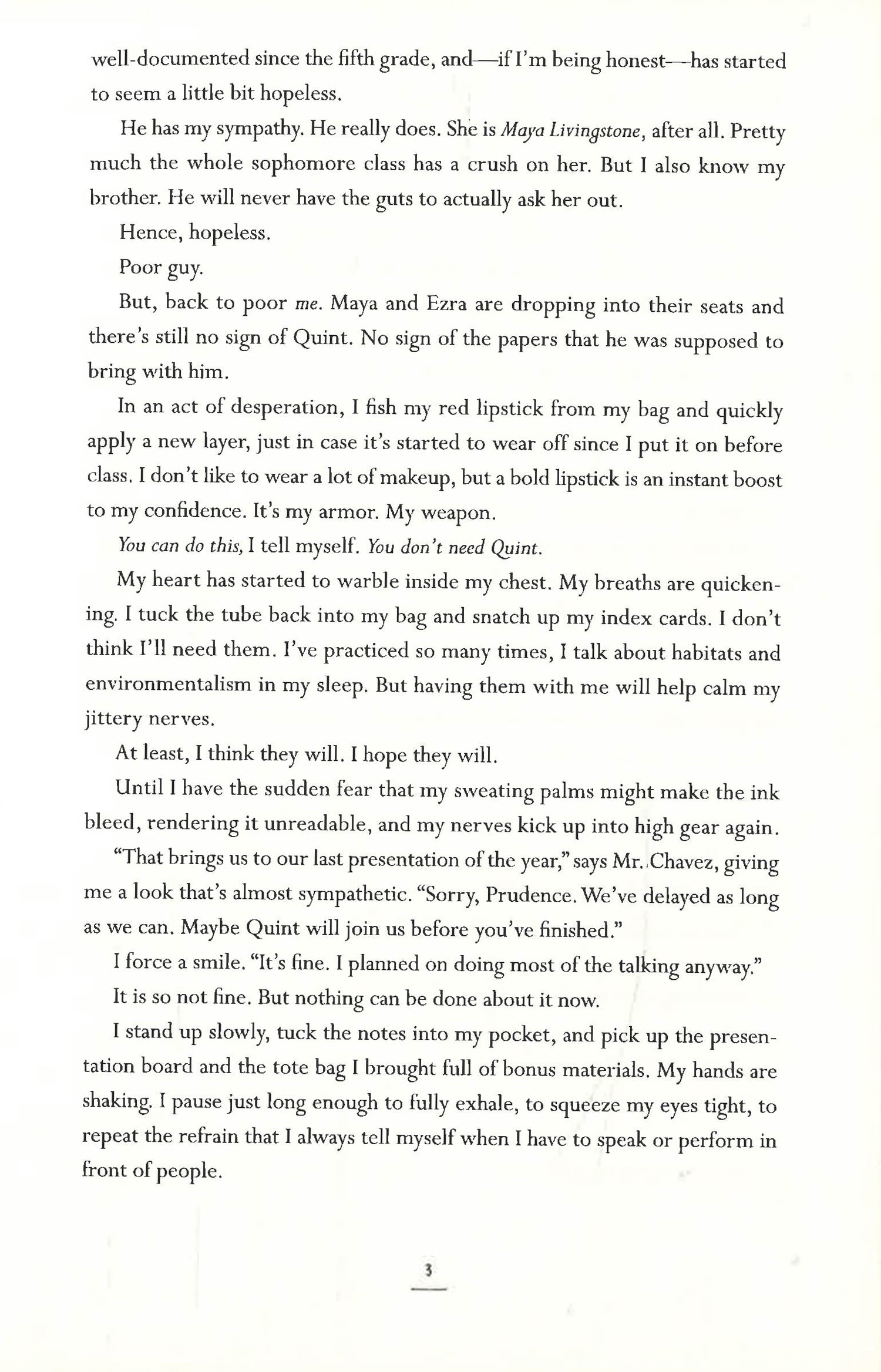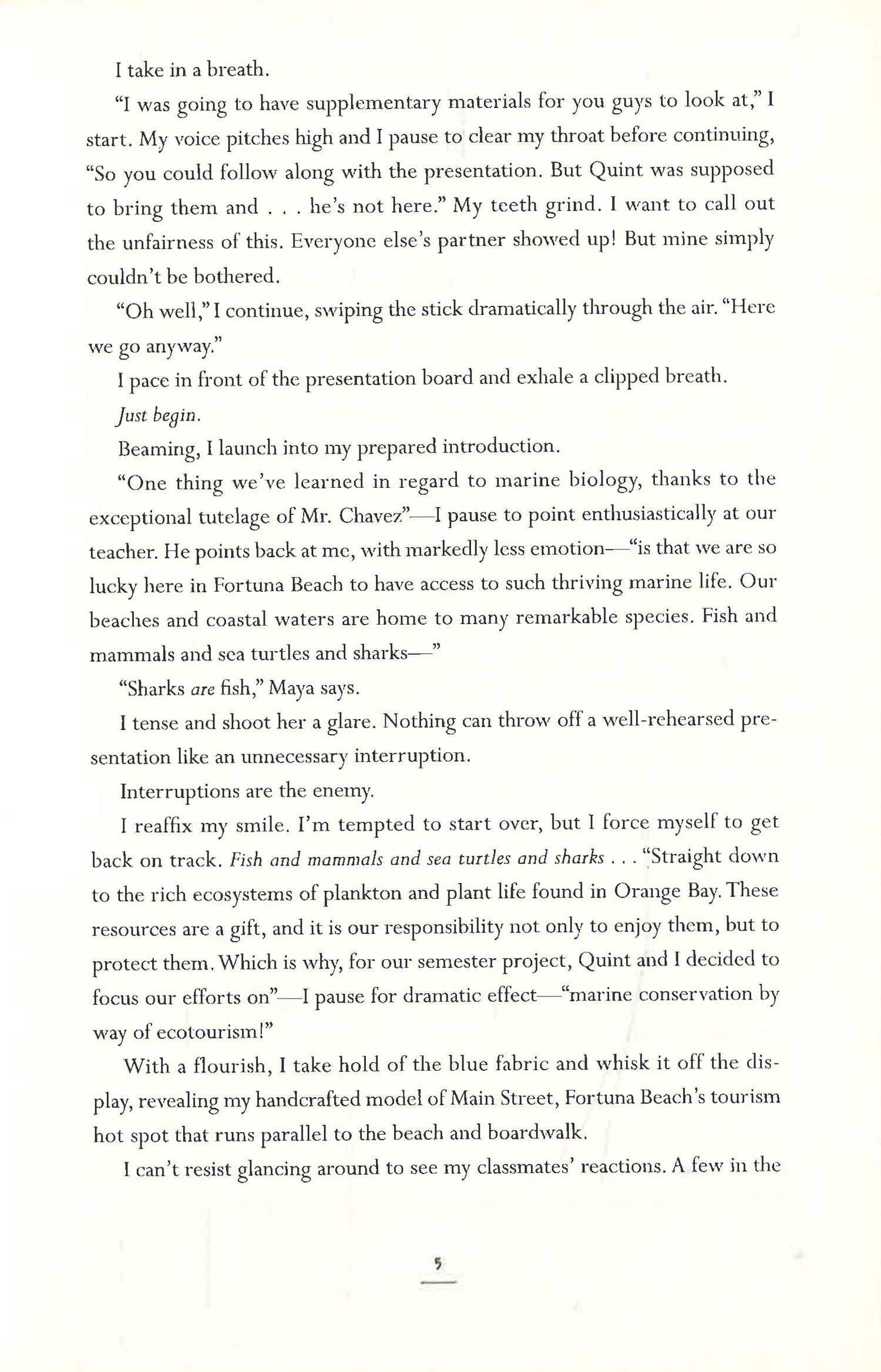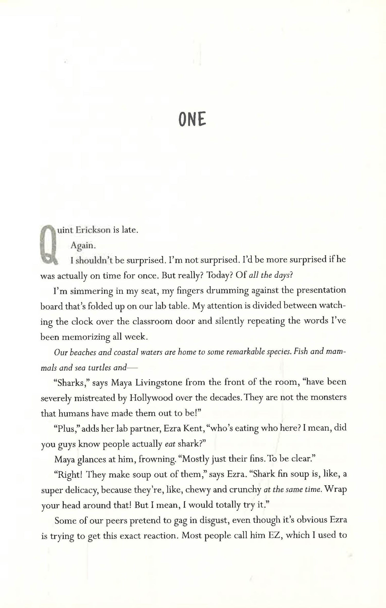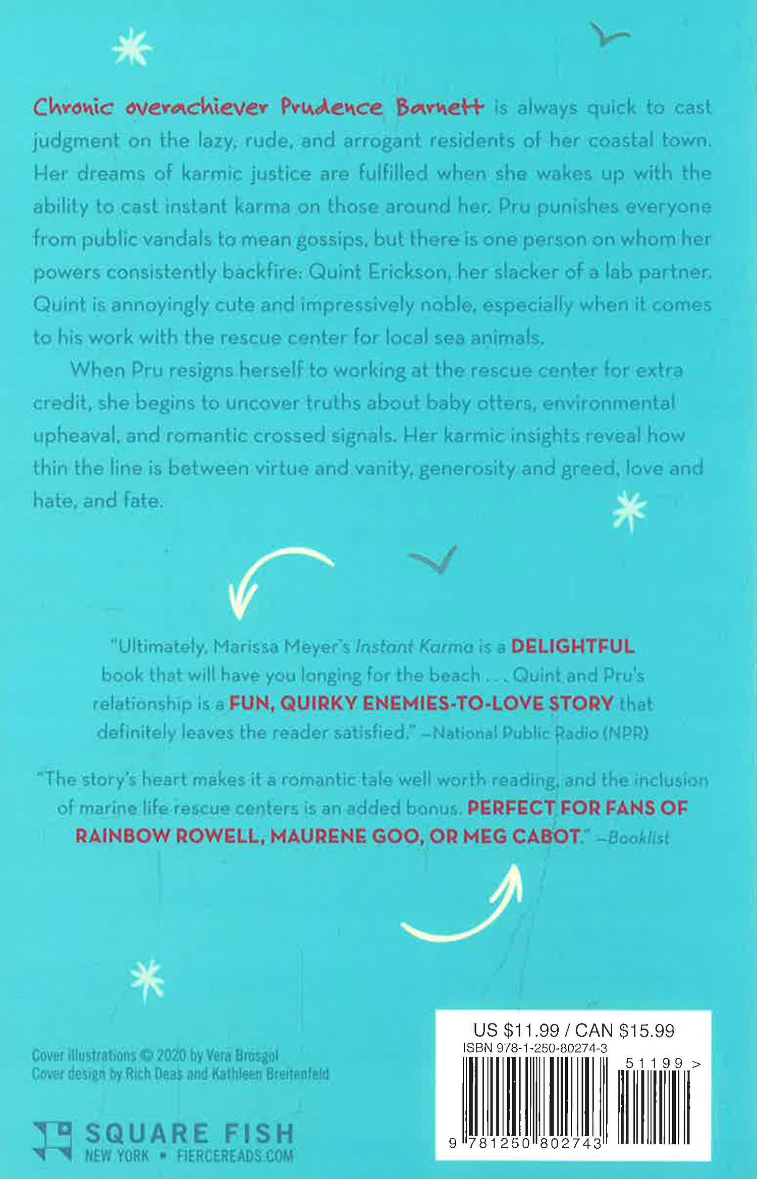 Pru giddily makes use of the power, punishing everyone from public vandals to mean gossips, but there is one person on whom her powers consistently backfire: Quint Erickson, her slacker of a lab partner. Quint is annoyingly cute and impressively noble, especially when it comes to his work with the rescue center for local sea animals.
