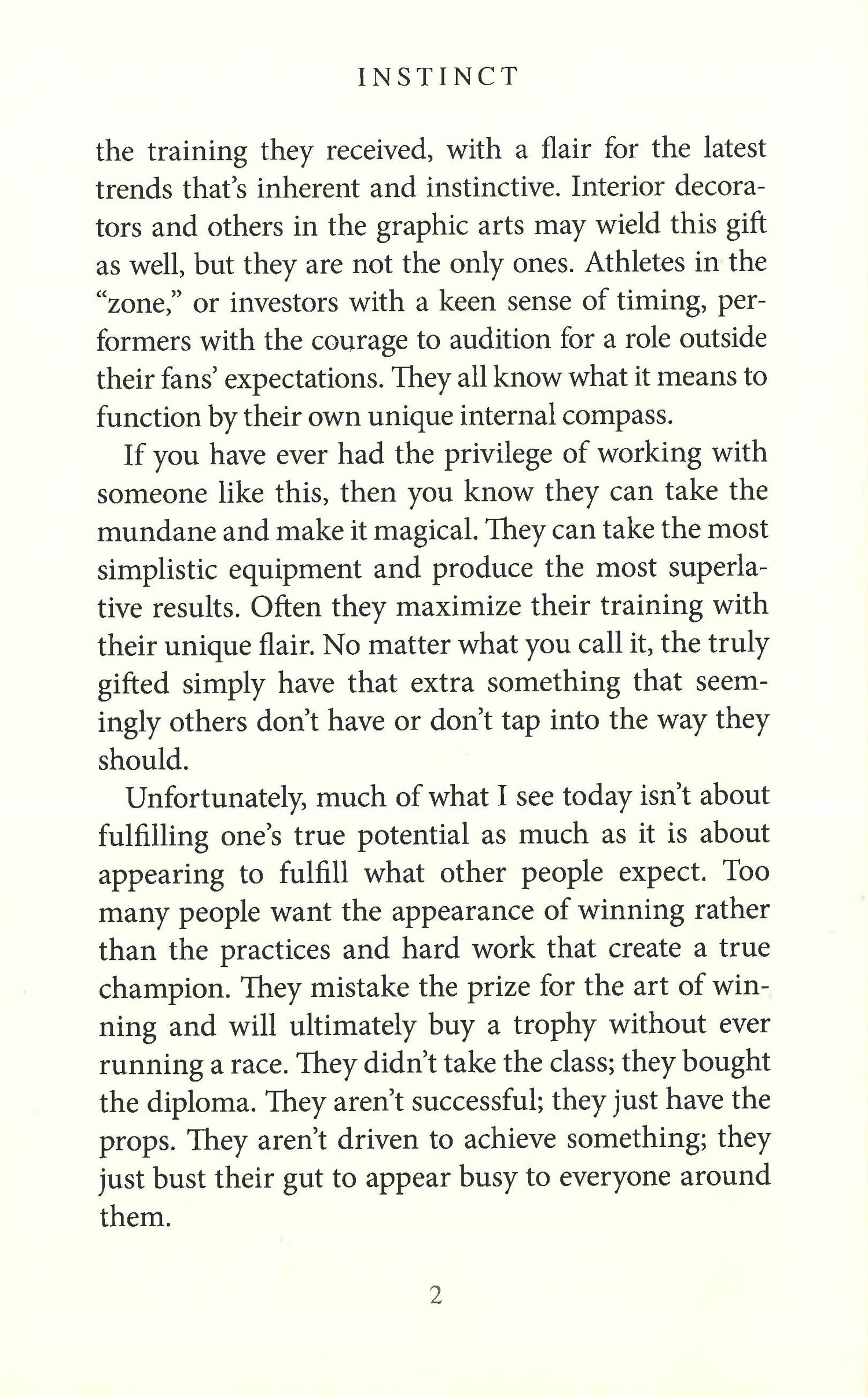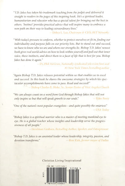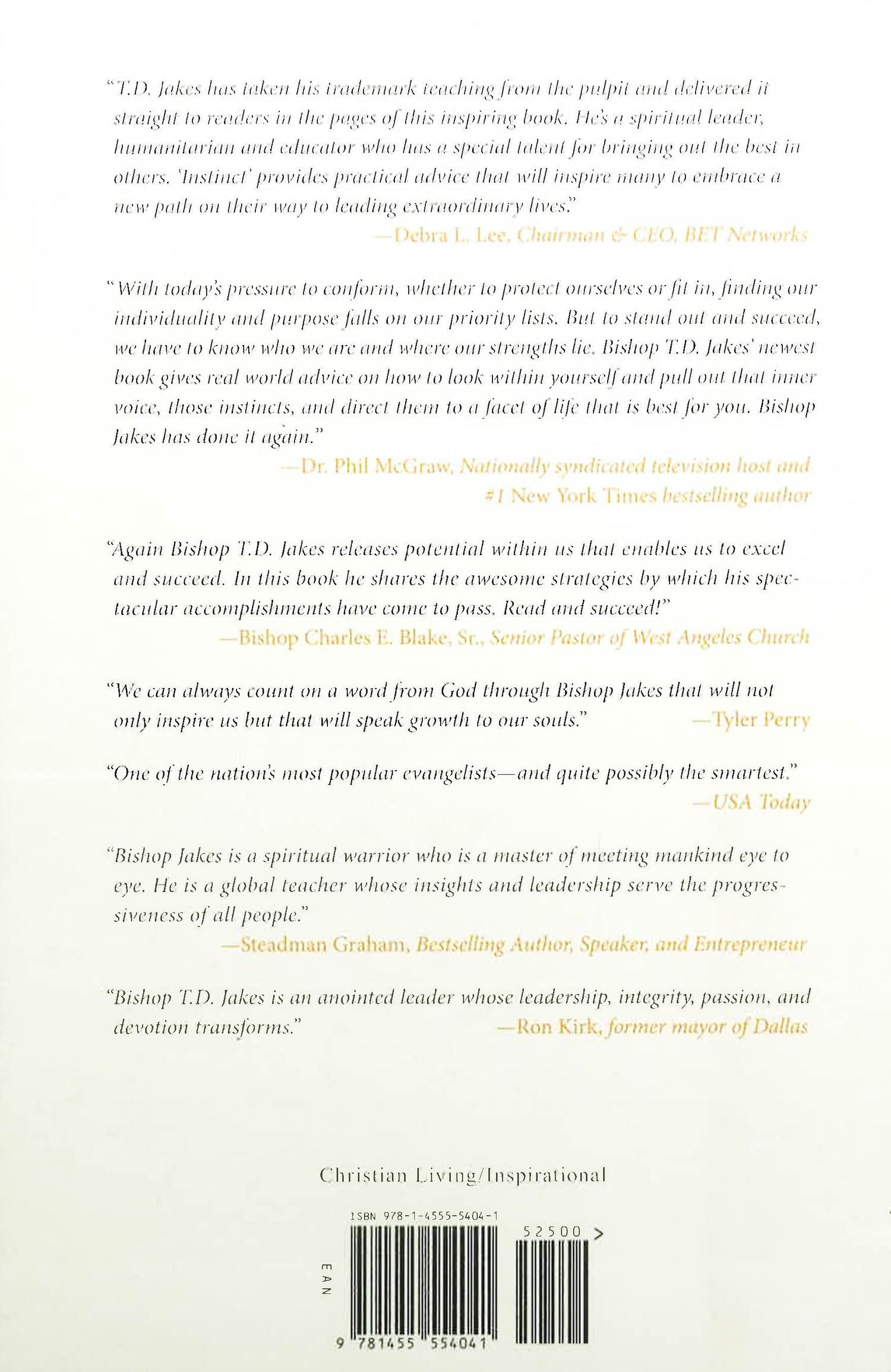 An instant #1 New York Times bestseller for six weeks, Bishop T.D. Jakes's smash-hit INSTINCT shows readers how to tap into their God-given intuition to achieve ultimate success. Whether you call it following your heart, a gut feeling, a hunch or intuition, instinct - the inner knowledge bubbling up from a wellspring of wisdom within - can lead to a bigger, elephant-sized life. Combining social, business and personal examples with biblical insights, in INSTINCT Bishop Jakes shows readers how to rediscover their natural aptitudes and reclaim the wisdom of their past experiences. Knowing when to close a deal, when to take a risk, and when to listen to their hearts will become possible when they're in touch with the instincts that God gave them. If readers are ready to unlock the confines of where they are, and discover where they were meant to be, then INSTINCT is their key!