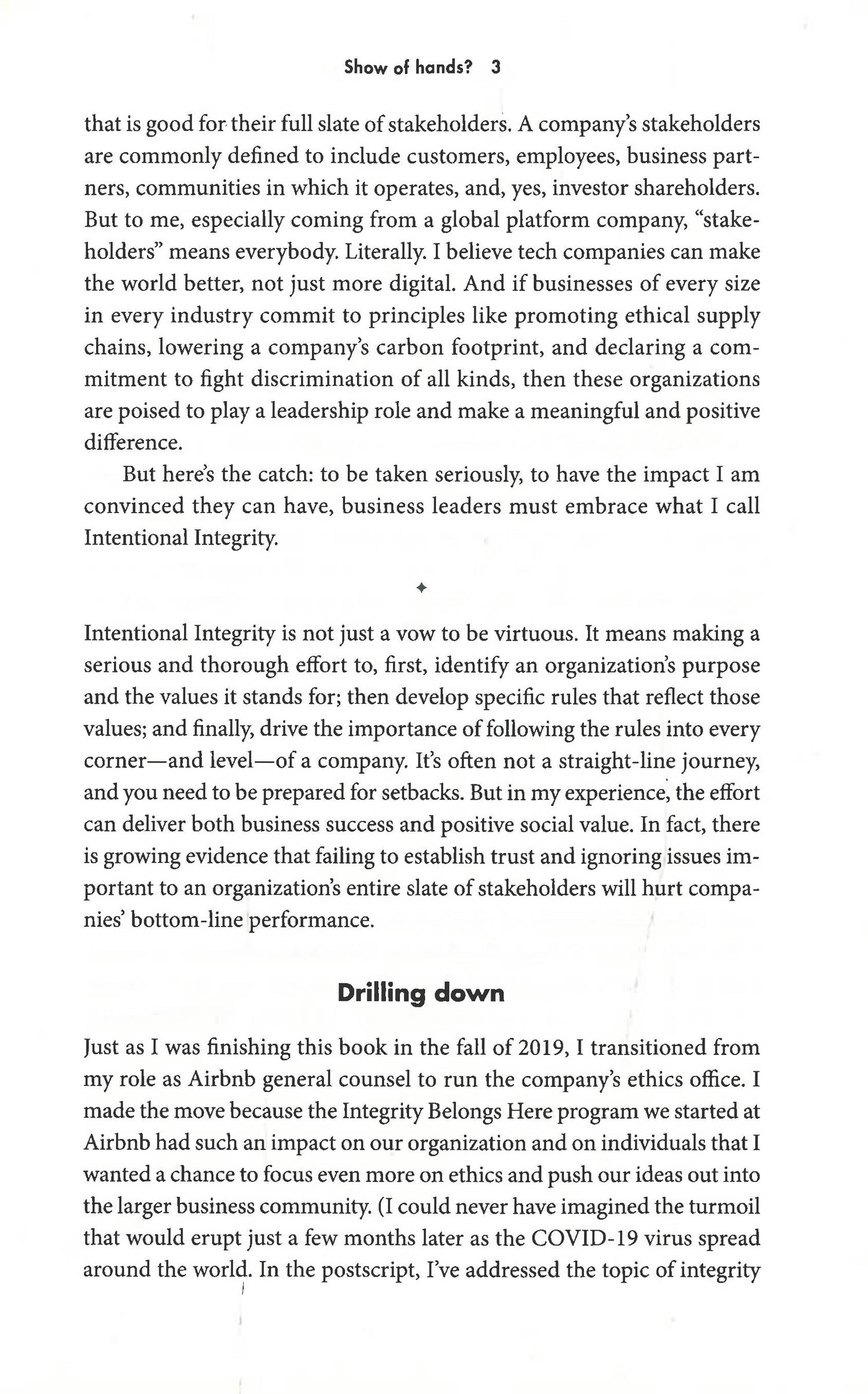 In Intentional Integrity, Chesnut offers a six-step process for leaders to foster and manage a culture of integrity at work. He explains the rationale and legal context for the ethics and practices, and presents scenarios to illuminate the nuances of thinking deeply and objectively about workplace culture.
