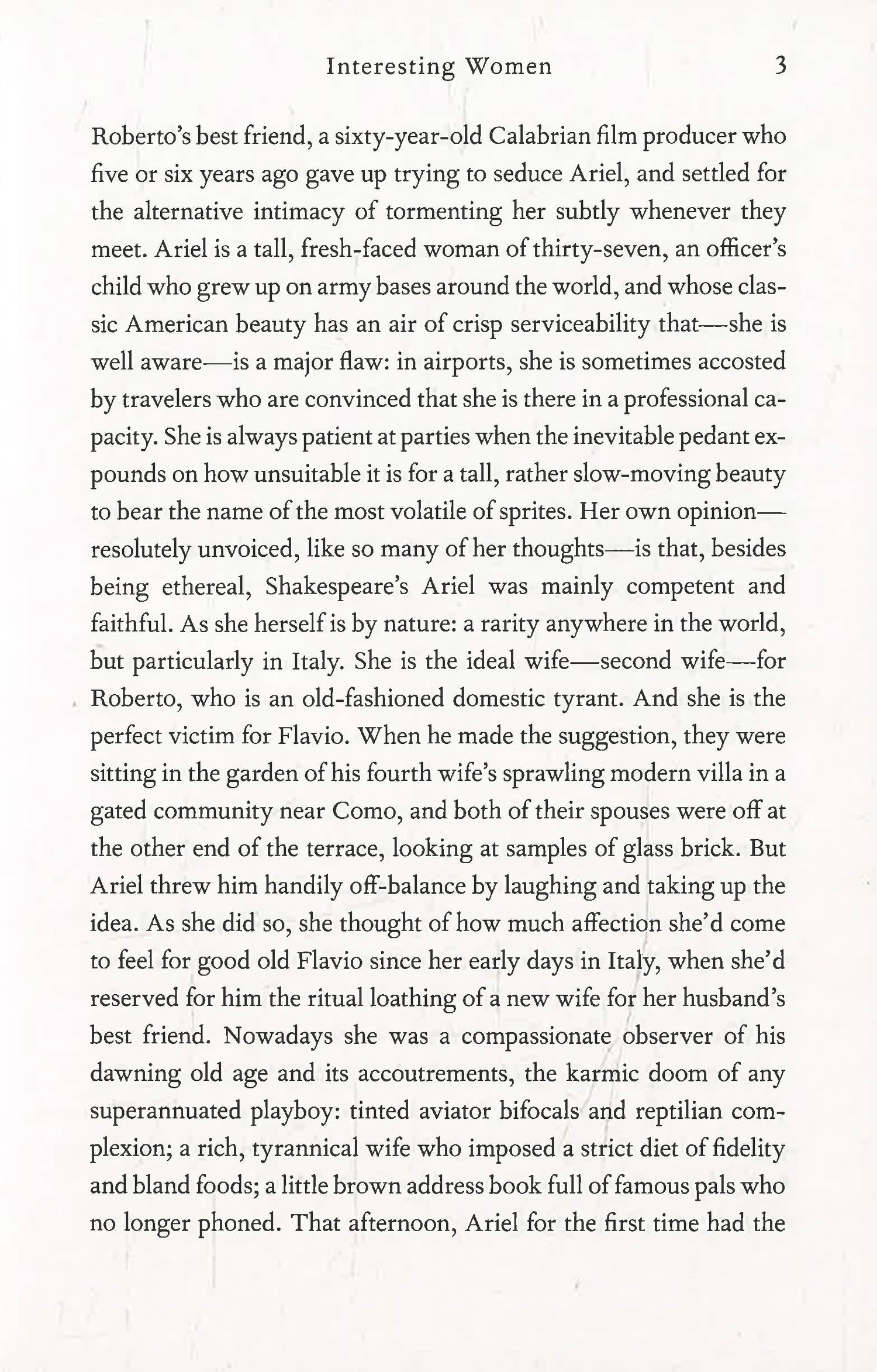 In “The Birthday Present,” a seemingly conventional American wife explores the wilder shores of marital devotion by giving her Italian husband an outrageous gift. “Winter Barley” is the account, alternately lyrical and perverse, of the brief love affair in Scotland between an elderly European prince and a thoroughly modern New England beauty half his age. And in the collection’s title story, “Interesting Women,” a woman on vacation in Thailand reflects with wry detachment on the confessional relationships that spring up between women (“another day, another soul laid bare”), before falling into one herself, which culminates in a hilarious and absurd odyssey through the jungle.